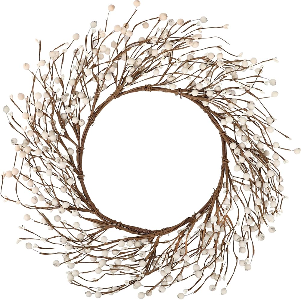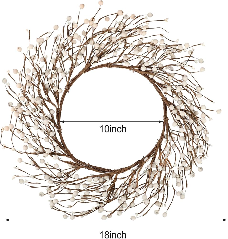 This off white berry wreath is handmade with an iron ring and white berries. The berries come in 2 sizes, and they look elegant and simple overall, very suitable for decoration on various occasions.