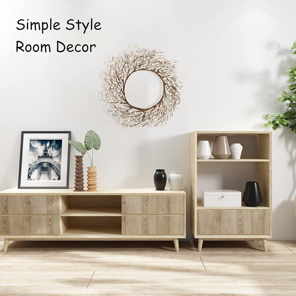 Note: To prevent the wreath from being damaged during transportation, all stems of the wreath are bendable and the wreath will be tightened. You can adjust it according to your needs when you receive it to get the best appearance. If you have any questions, please contact us by mail.