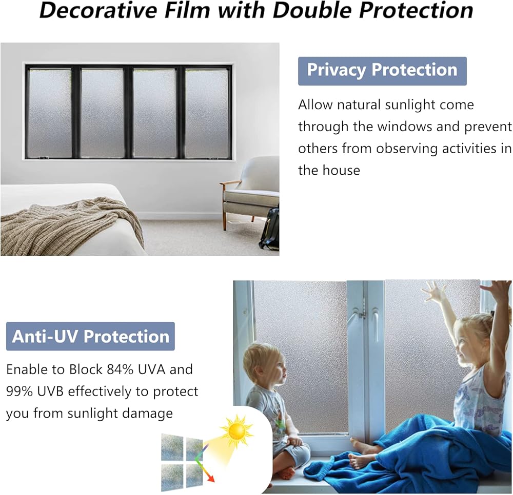UV PROTECTION - The window privacy film blocks out 84% UVA rays and 99% UVB rays and strongly prevents you and your family from the glare caused by long-time direct exposure to the sunlight.