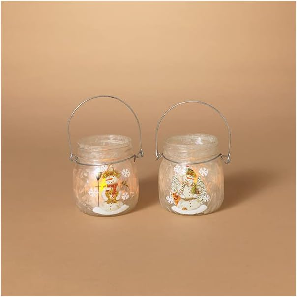 Gerson International Frosted Glass Holiday Snowman Design Luminaries, 3.5-inch Height, Set of 2 in Kuwait