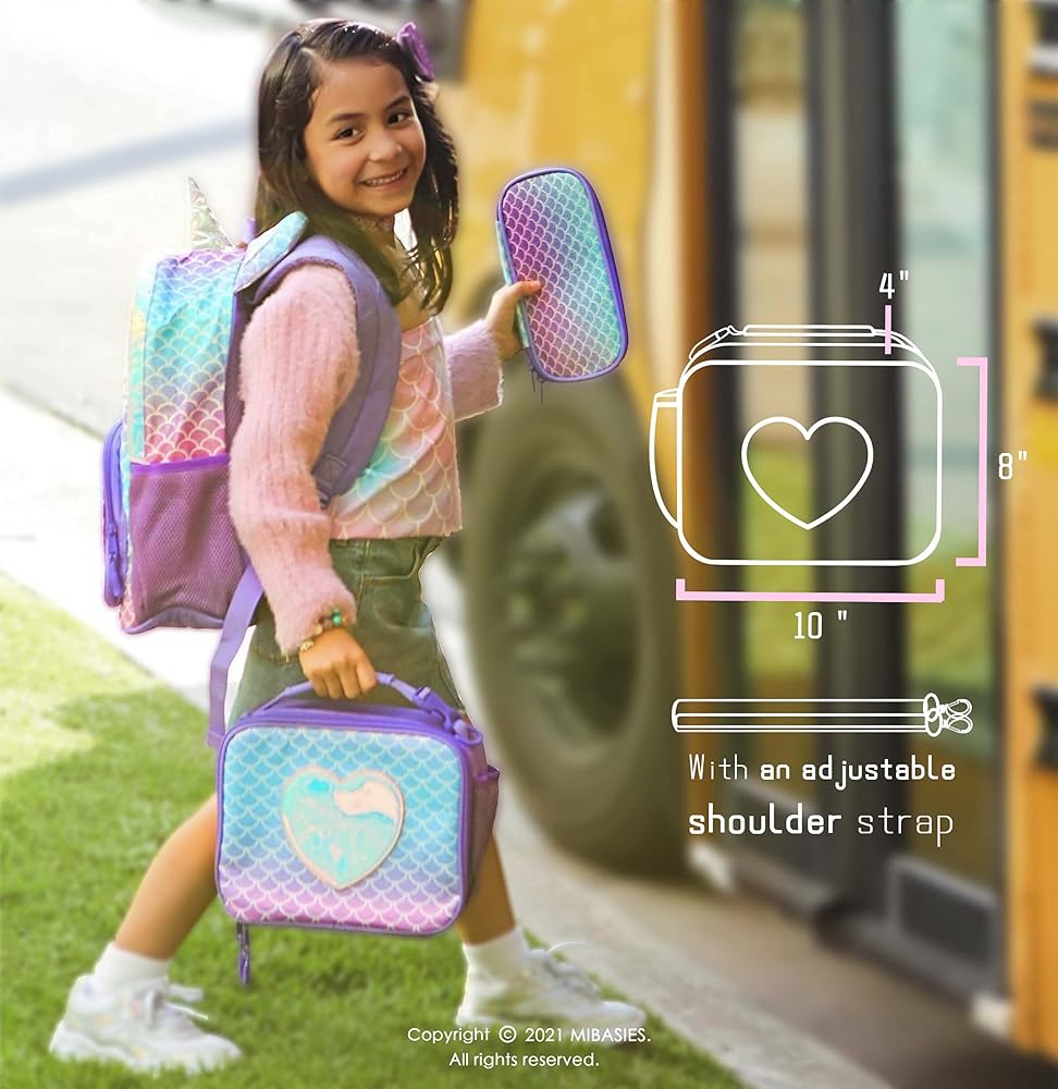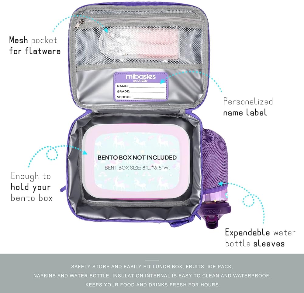 ❤ DIMENSION - 10”L x 8.07”H x 4.13”W. If your little one needs a lunch box that can hold a children's lunchbox and some extras, this spacious option features a pocket for water bottle on the side and a large zipper pockets on the back, also has a internal mesh pocket help separate knives, forks, and spoons.