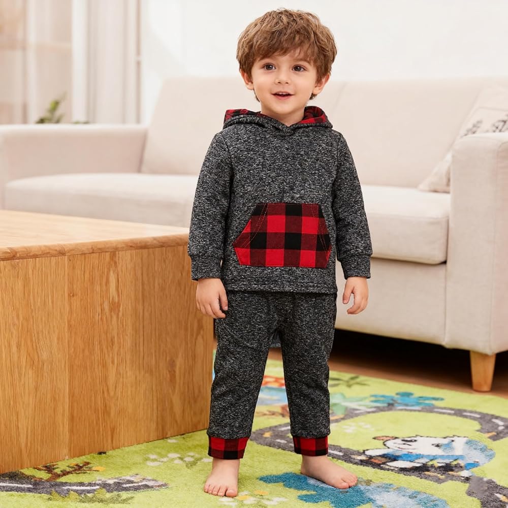 💖Superior material: Toddler Baby boy clothes, made of 95% Cotton, 5% Spandex, the inside of hoodie tops are made of soft cottone with a thin layer of fleece , which is suitable for Fall Winter and Spring. Sturdy and no loose threads, soft, good breathability, comfortable for your baby boy.