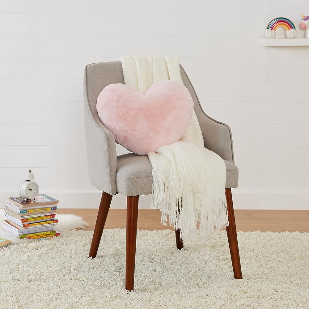 Amazon Basics Kids Decorative Pillow, Peony Pink Heart, 10.5 in x 4 in