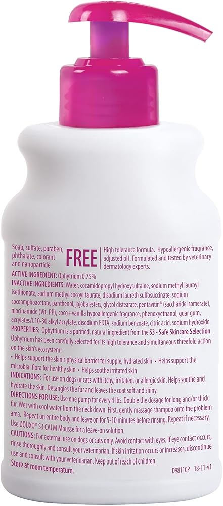 DOUXO S3 CALM Shampoo helps provide your dog or cat with soothing relief from the discomfort of itching and inflamed skin due to allergies