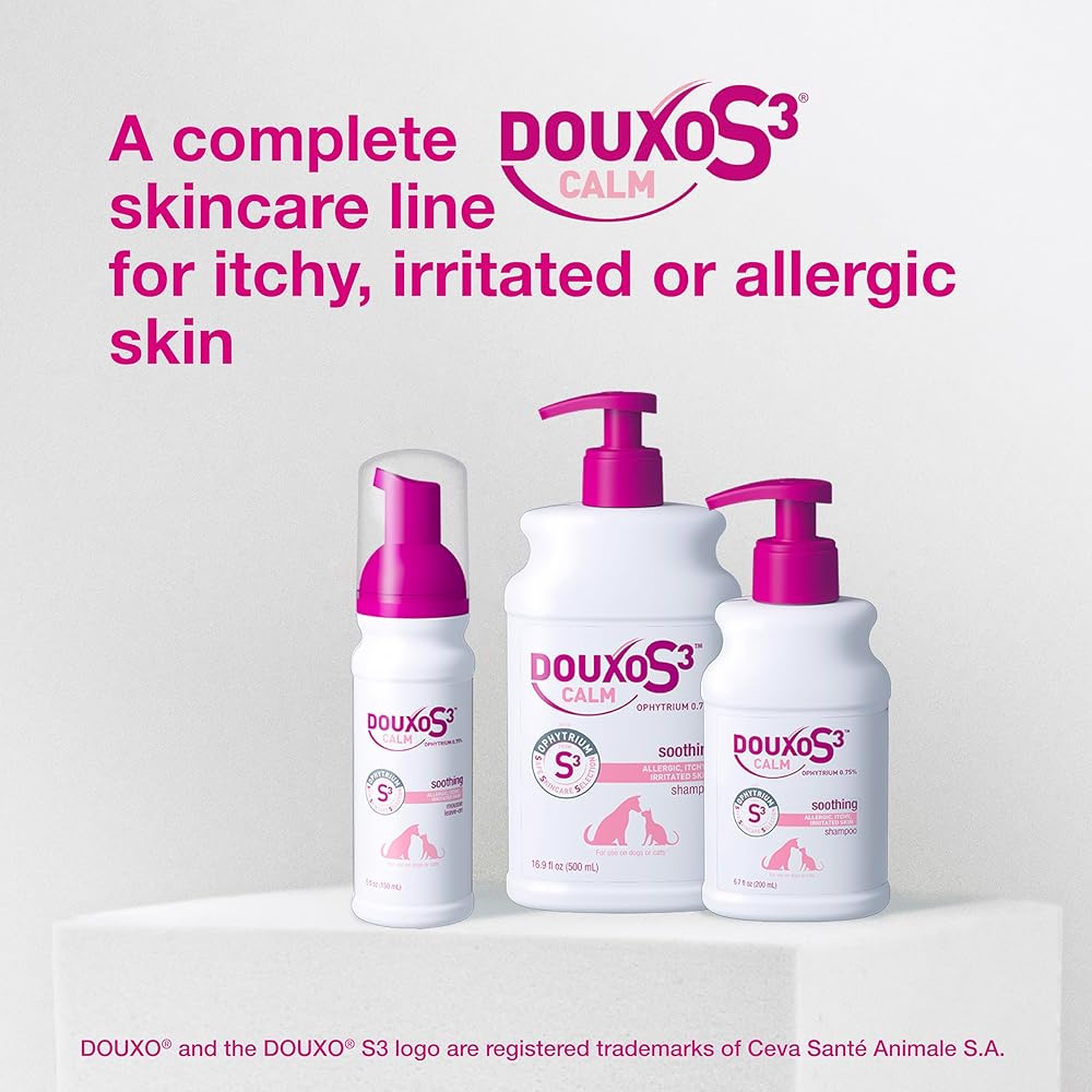 Formulated to help soothe allergic, itchy or irritated skin of dogs or cats. Moisturizes and detangles the fur to leave the coat soft and shiny. DOUXO is the 1 non-prescription topical brand used and recommended by U.S. veterinarians for dogs cats with allergic dermatitis.