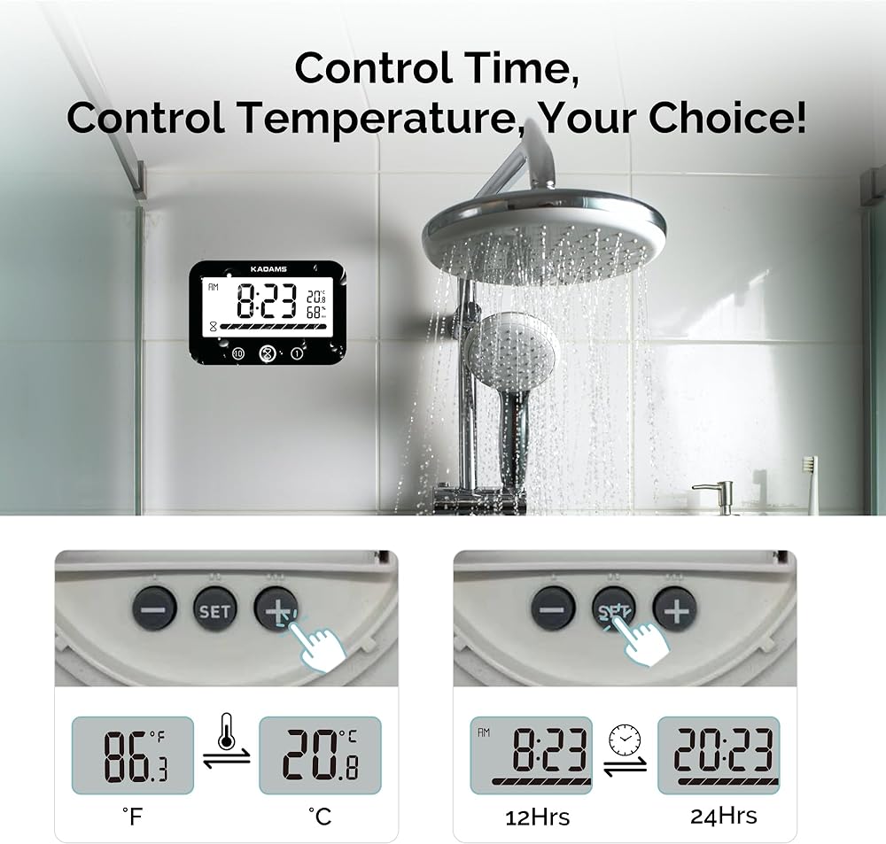 Introducing the KADAMS Timer Digital Kitchen Timer Clock, a multifunctional timekeeping marvel that seamlessly blends elegance, functionality, and versatility. This digital timer is not just a clock but also a reliable countdown timer, designed to cater to your diverse timekeeping needs. Dual Functionality for Maximum Versatility: Experience the convenience of having both an elegant clock and a reliable countdown timer in one sleek device. The KADAMS digital timer seamlessly transitions between these functions, ensuring you have the flexibility you need for various activities. User-Friendly Countdown Timer: Stay in control of your time with the user-friendly countdown timer feature. The integrated time progress bar provides a visual representation of the remaining time, allowing you to manage your tasks effortlessly and efficiently. Waterproof Design for Kitchen and Bathroom Use: Crafted to endure the demands of kitchen and bathroom environments, this timer boasts a waterproof design. Say goodbye to worries about splashes and spills – the KADAMS Timer ensures worry-free use, even in areas where liquids are commonly present. Multiple Mounting Options for Your Convenience: Place the waterproof kitchen clock and countdown timer on your countertop or shelf with ease. Alternatively, take advantage of the two hanging holes on the back for convenient wall mounting. The included suction cups provide a secure attachment option, allowing you to save space and keep your timer within easy reach. Large LCD Display for a Modern Aesthetic: Elevate the aesthetics of your kitchen or bathroom with the sleek and modern design of the KADAMS Timer. The large LCD display, intuitive controls, and waterproof features make it not only a functional but also a stylish addition to your space. Perfect for Various Settings: Whether you're cooking up a storm in the kitchen, managing time in a classroom, keeping track of your kids' activities, optimizing your bathroom routine, or enhancing productivity, the KADAMS Timer is the perfect companion.
