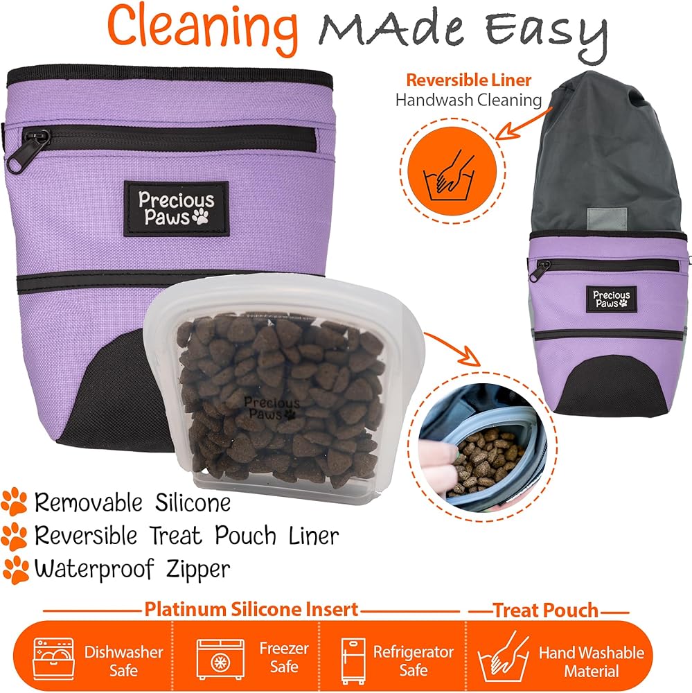 Cleaning Easy with Our Silicone Dog Treat Bag Insert - Cleaning is a breeze with our dog treat bag. The waterproof material wipes clean effortlessly, and the removable dishwasher-safe platinum grade silicone insert keeps your treats fresh. What's more, the main pocket is reversible, allowing for quick and thorough cleaning.