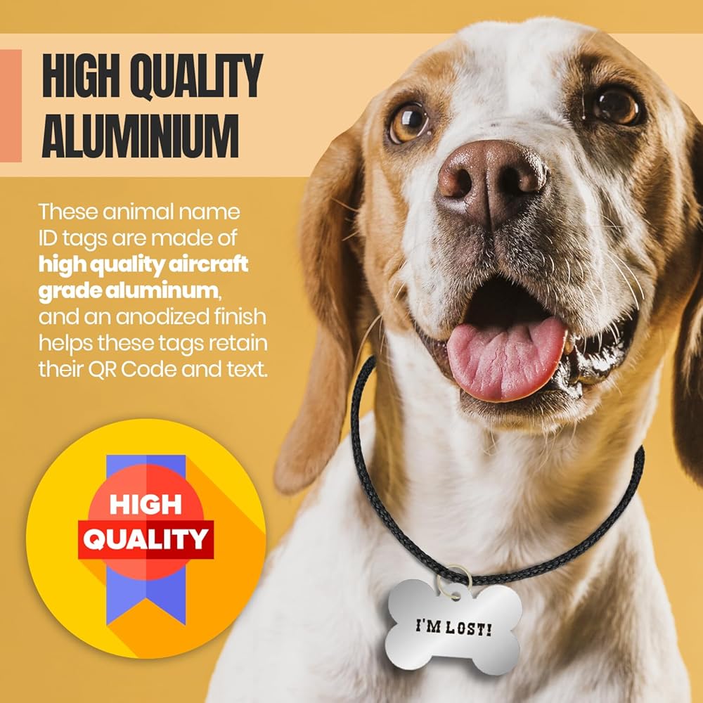 HIGH QUALITY ALUMINIUM - These animal name ID tags are made of high quality aircraft-grade aluminum, and an anodized finish helps these tags retain their QR Code and text.