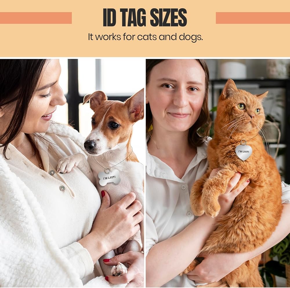 Pet ID Tags with QR Code for Dog & Cat - 3-Pack ID Tag for Cats & Dogs with Easy Setup - Bone, Heart & Round Shapes, for Collar, Medium Small Name Tag, Customizable Personalized