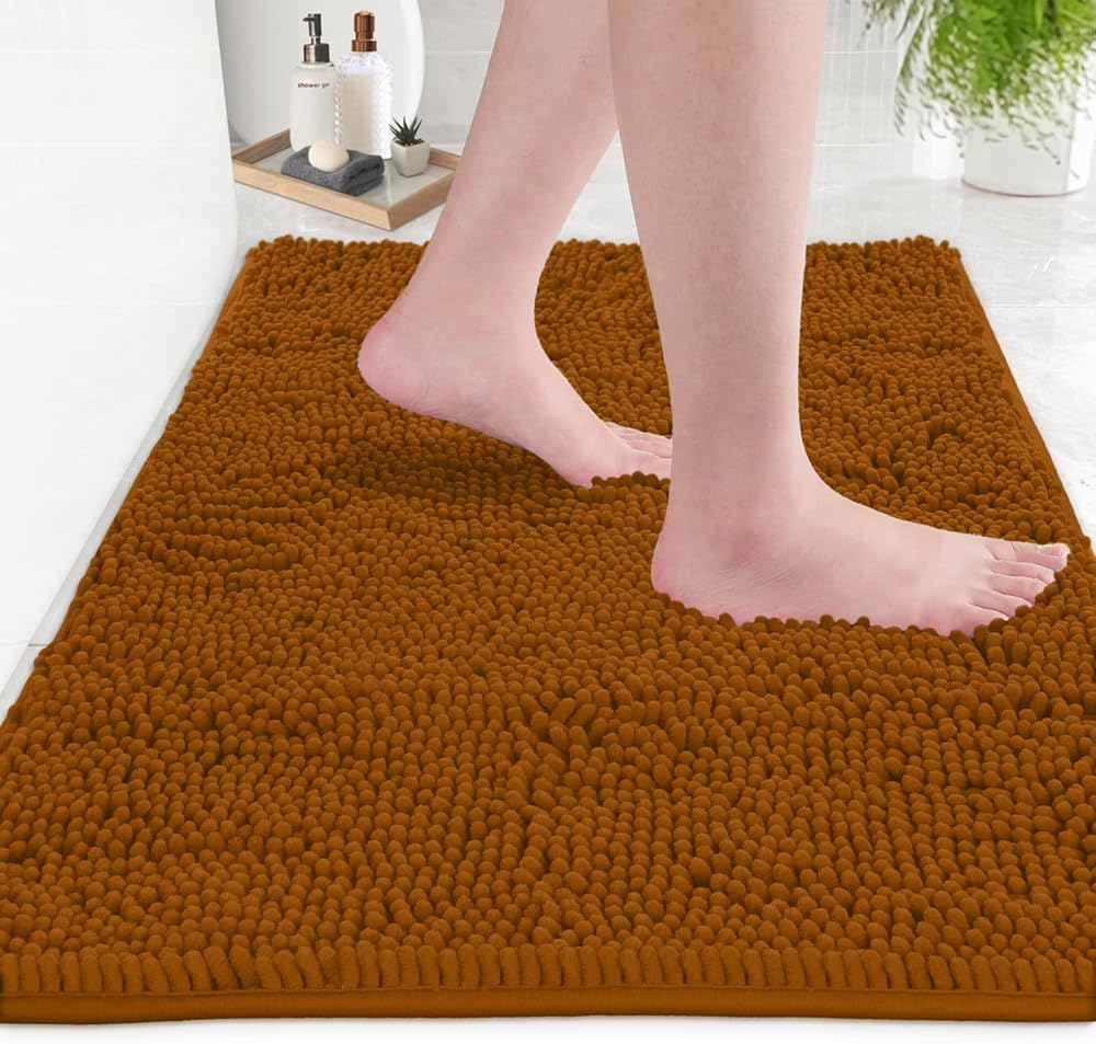 IT WILL NOT SLIP! :Constructed with a strong and durable high-quality SILICONE material backing ;This newly invented anti-skid backing has practically slip resistance on the tile floor surface, that it Prevents from slipping to keep you more safe and cozy; It brings superior safety in your bathroom; Even after you wash it many times, it still keeps well
