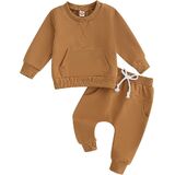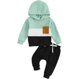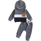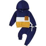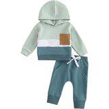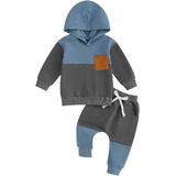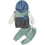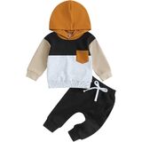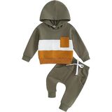 Casual Design: Contrasting colors, hooded design, long sleeves, baby boy sweatshirt with breast pocket, boys sweatpants with elastic waist and drawstring design, perfect for fall, keep your child warm and comfortable while being stylish.