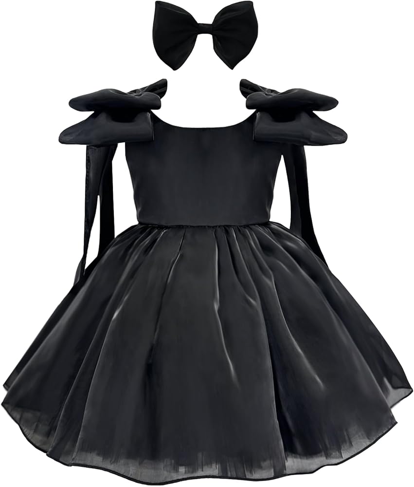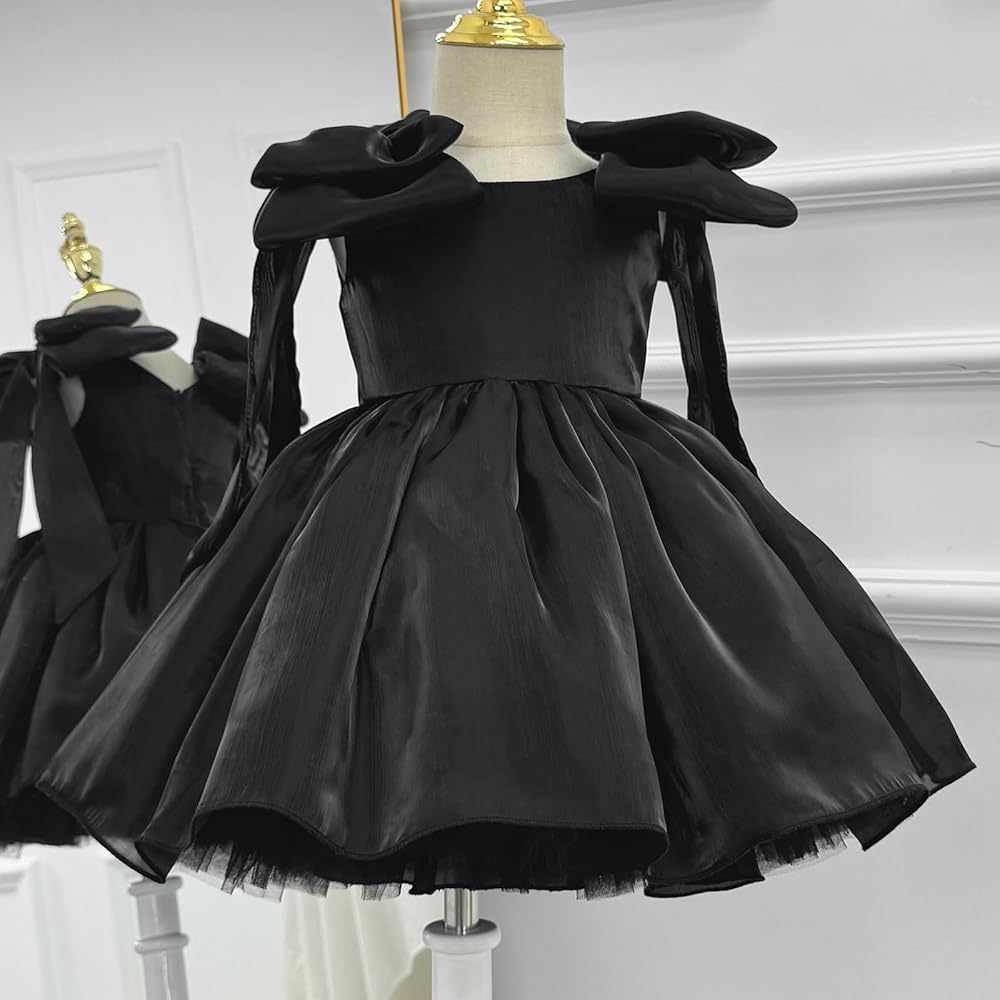 🎀Features: Our Baby Bowknot Party Dresses are Long Sleeve, Big Bowknot, Multi-layer Ruffled Lace, Round Neckline, V Backless, Back Closure Zipper, Knee Length, Infant Flower Wedding Baby Girls Princess Dress for Toddler Girls.