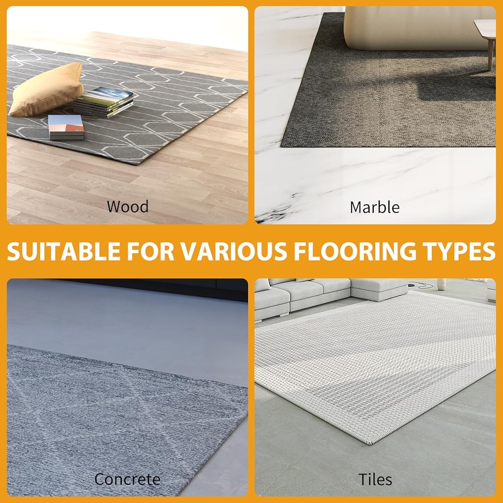 【 Widely Used 】- Carpet tape is suitable for all types of floors, tiles, hardwood, marble, concrete, etc. Perfect for doormats, kitchens, living rooms, and bedroom carpets. It is not recommended to use on rubber or jute carpets or carpets as clips may not stick to these materials.