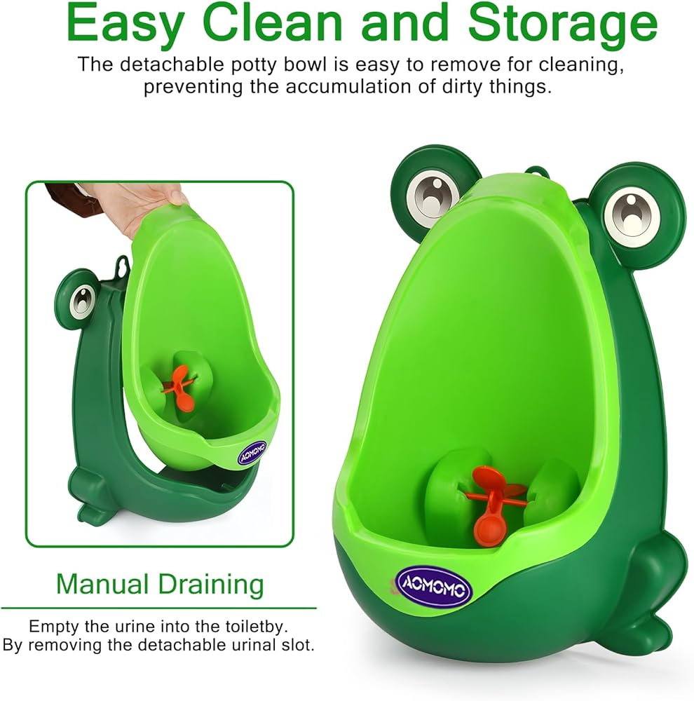 Toddler Urinal for Boys, Frog Potty Training Toilet with Spinning Target, Ages 1-6 (Green)
