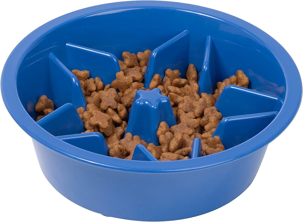 Non-slip dog food bowls - No more skidding and sliding. A non-slip rubber grip keeps our slow feed dog bowl in place when used on the floor or a mat, making it great for small, medium, and large-sized pets