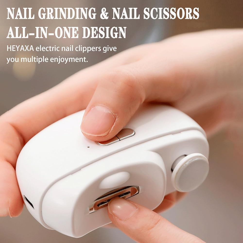 HEYAXA Electric Nail Clipper, Rechargeable Fingernail Clippers 2 Speeds Nail File Nail Trimmer with Nail Scraps Storage and Light for Baby, Kids, Women, Seniors, Weak Hand