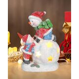 Celebrate the season with this adorable snowman and child Christmas ornament that will add a festive touch to your home or office.