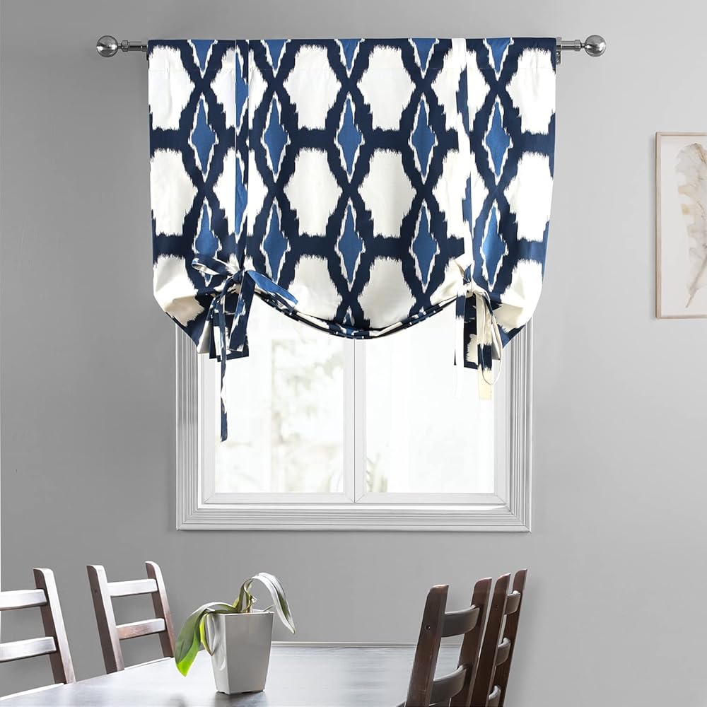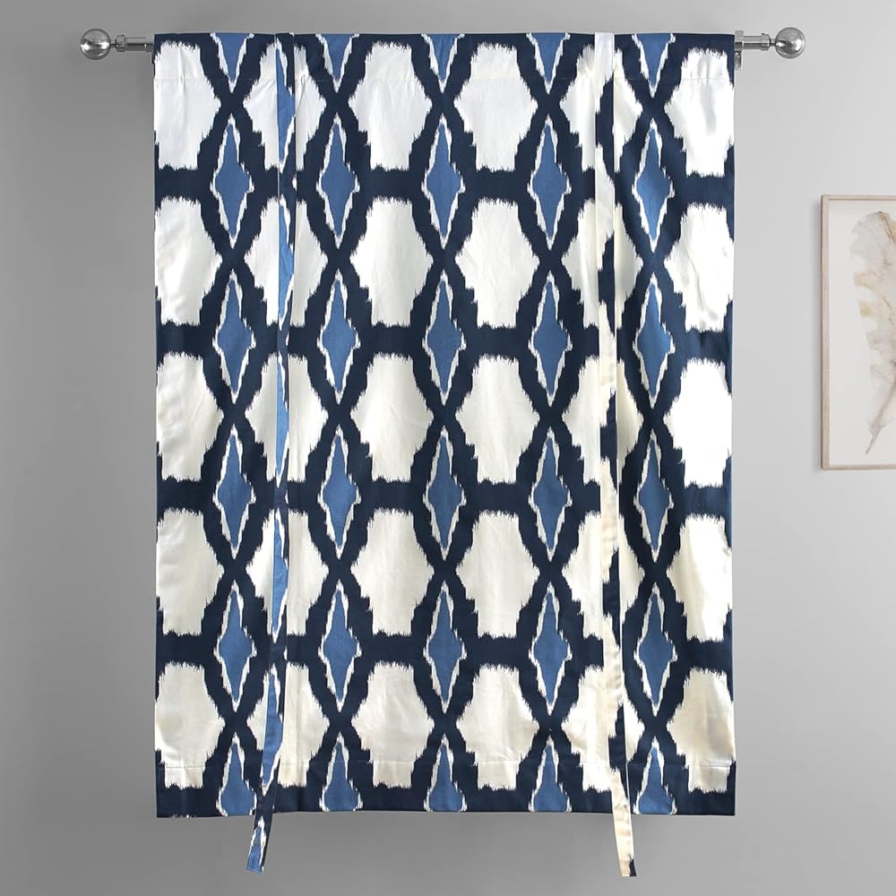 HPD Half Price Drapes Room Darkening Tie Up Curtains 46 X 63 Inch Ikat Printed Cotton Window Roll Up Balloon Curtain for Living Room, Kitchen PRTW-TUD24A-63 (1 Panel), Ikat Blue