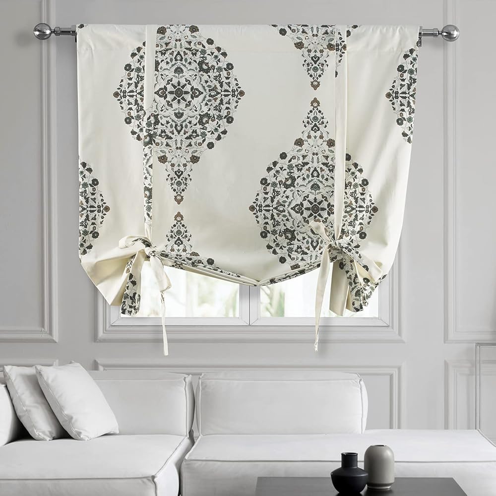 What You Get: Once purchased you will receive one tie-up panel (1), measuring 46 inches (116.84 cm) wide by 63 inches (160.02 cm) in length. Each panel will be individually bagged to preserve the fabric quality. Window shades measuring guide is below.