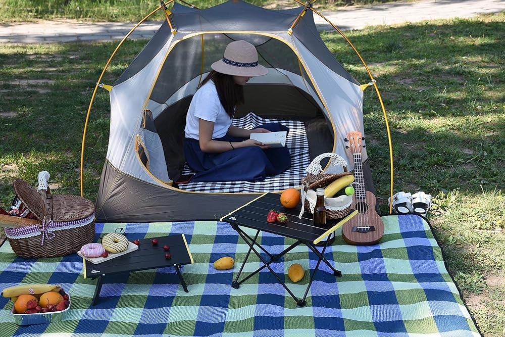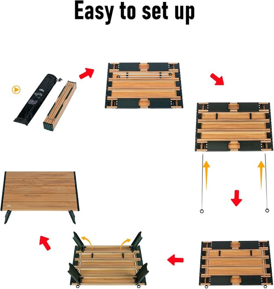 Very easy to set up, just open the base frame and fix them with the bars, enjoy your leisure time in seconds; Perfect height and size for drinks and snacks when relaxing on your camping chairs, have a picnic in the garden, as a beach table, go fishing, have breakfast on the bed.