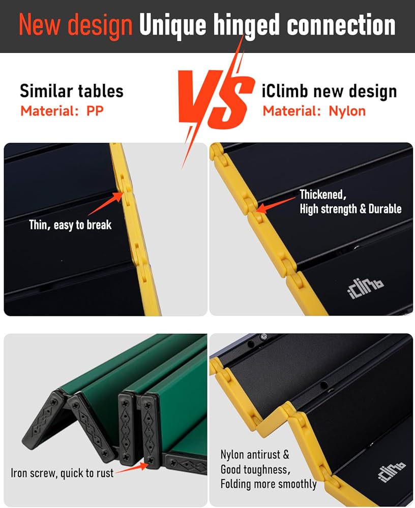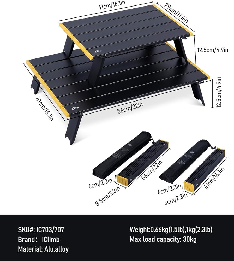 Ultralight, made of high quality aluminum alloy 6063, only 1.5 lbs; Max Load 66 lbs; Unlike wooden or nylon-top tables, this table is durable, waterproof, corrosion-resistant, easy to clean; Heat resistant, can put your stove on
