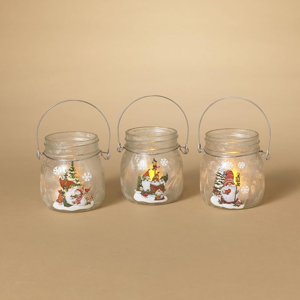 Gerson International Frosted Glass Holiday Gnome Design Luminaries, 3.5-inch Height, Set of 3