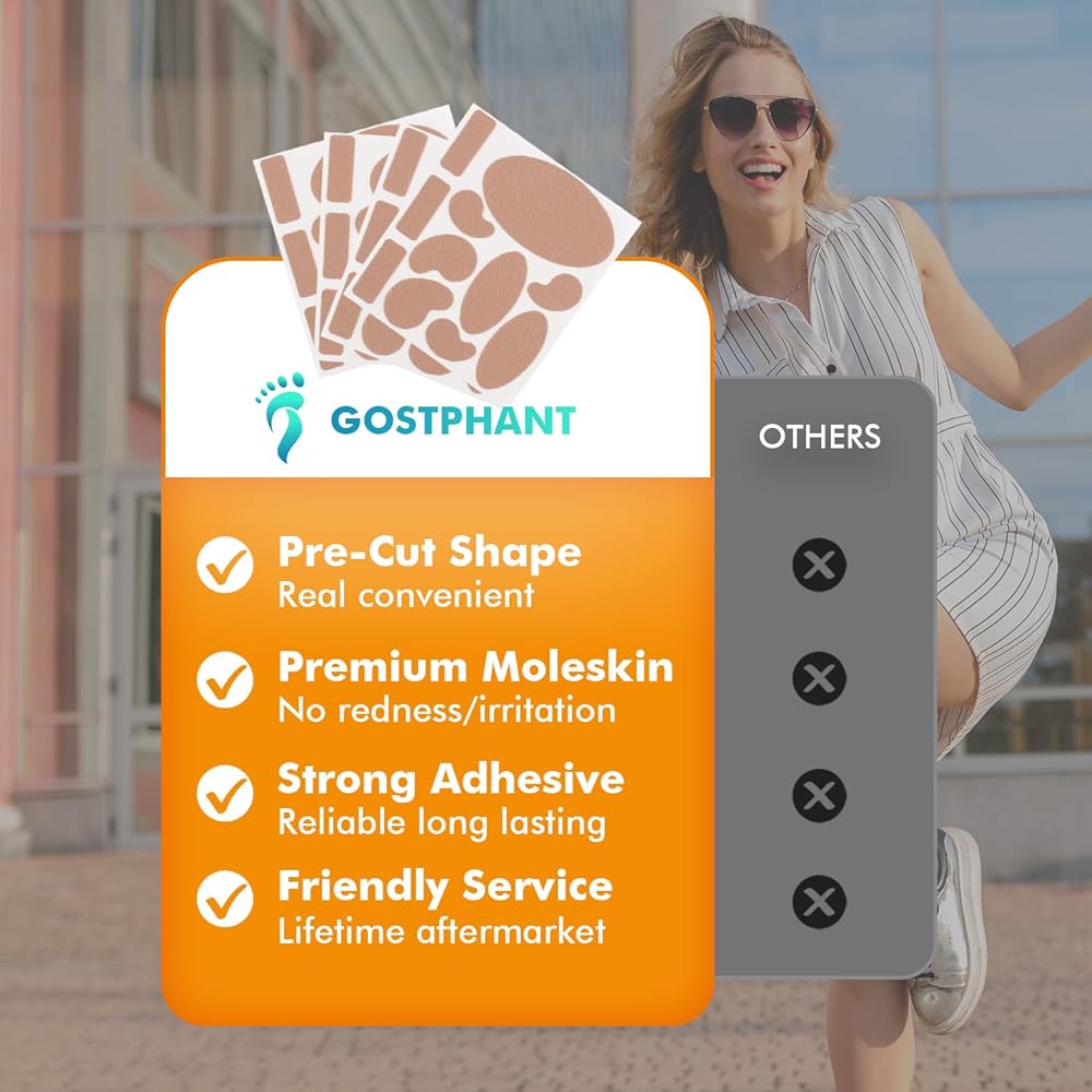 👣【Pre-Cut Design】: Moleskin for blisters come in a pre-cut shape, perfect for heel, forefoot or any areas prone to friction. ✅Easy to use - Peel it off directly, stick and press firmly.