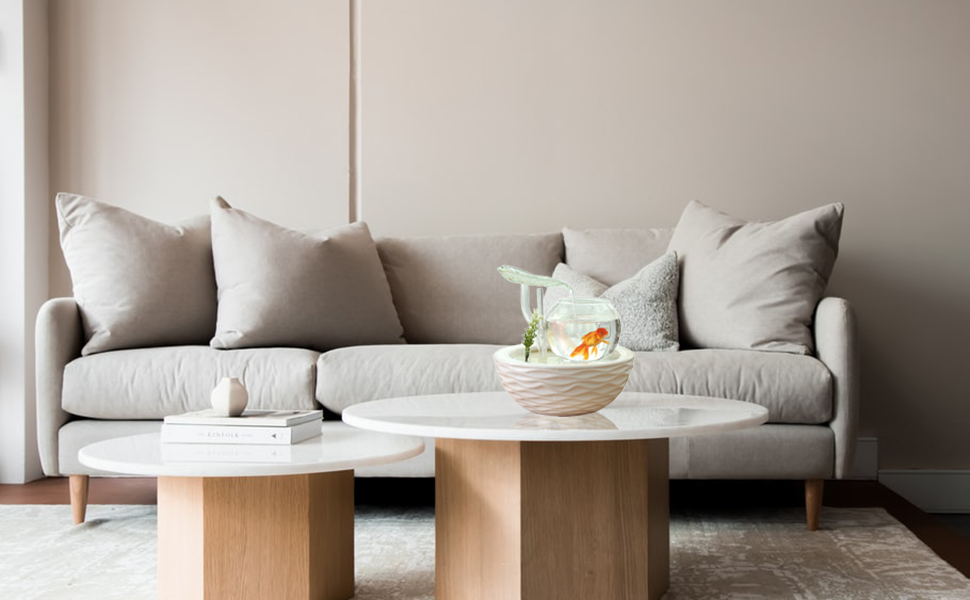 4.Package includes: glass decorative fish tank, white ceramic bowl, water pump.