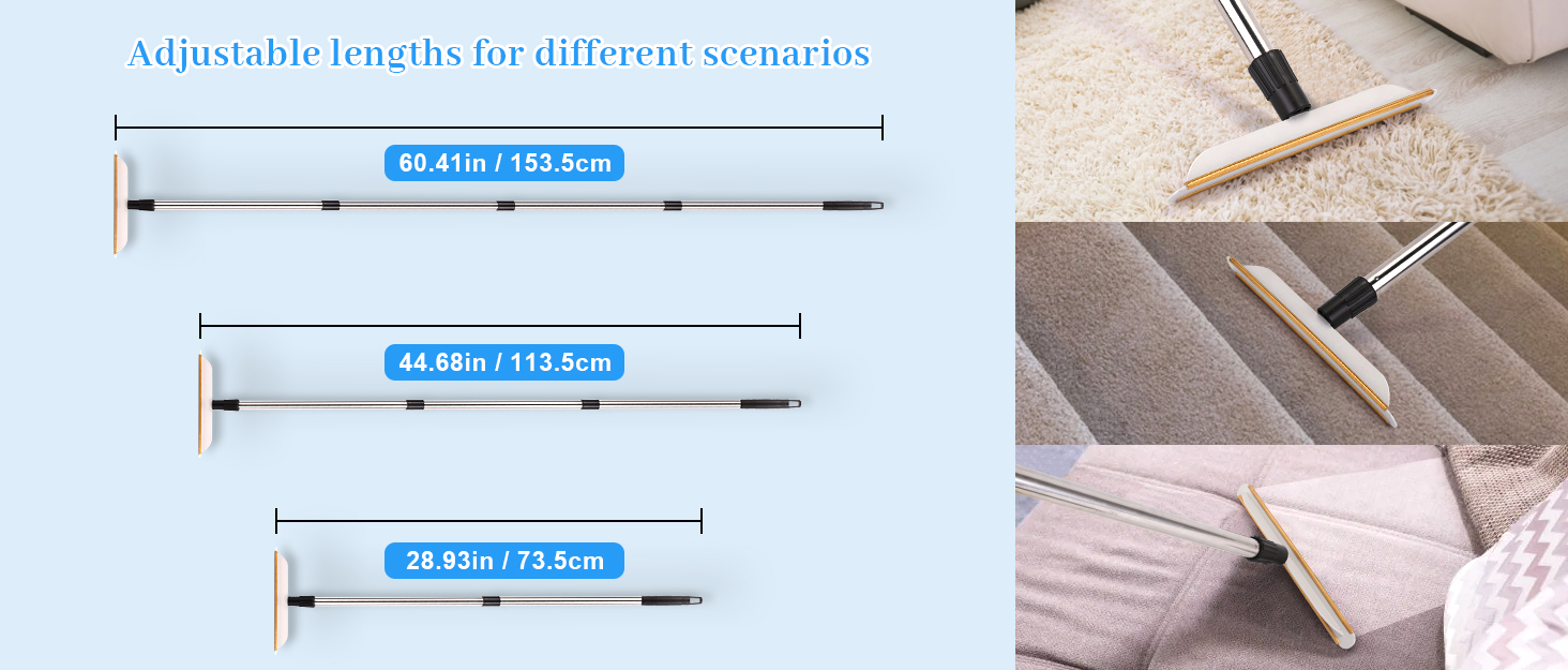 Pet Hair Remover, 60" Cleaner Carpet Rake with 4 Height, Cat Dog Hair Remover and Hair Scraper Fur Remover, Carpet Rake Pet Hair Removal Tool for Carpets, Rugs, Mats, Couch, Car Mats