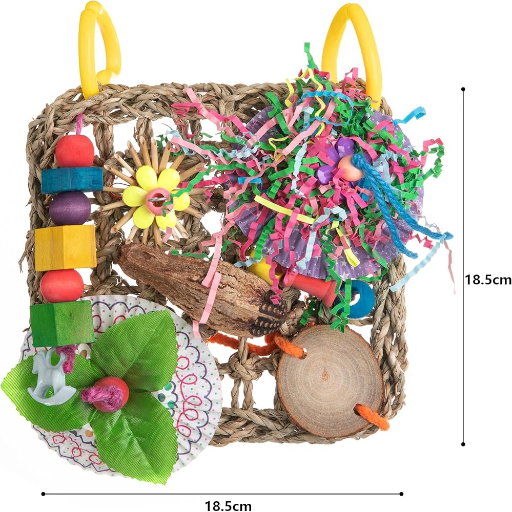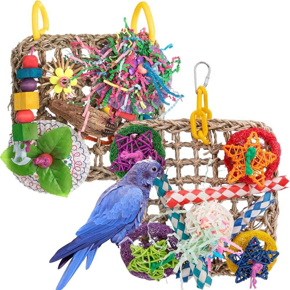Bird Toys, Parrot Toys, Set of 2 Seagrass Woven Suspension Cushions, Natural Parrot Chew Toys for African Grey Parrots, Amazon Parrots, Lovebirds Small and Medium Birds.