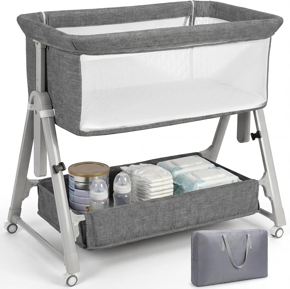 IDEAL FOR NIGHT FEEDINGS - The crib side bassinet has a zippered design on the side that can be easily opened to help moms take better care of their babies. At the same time, the mesh structure provides plenty of breathability and visibility for baby and keeps an eye on baby's status. Keep your baby as close to you as possible while sleeping in their own comfortable room Especially for any mom who is breastfeeding or had a c-section, it is truly a sleep saver and quality of life enhancer.