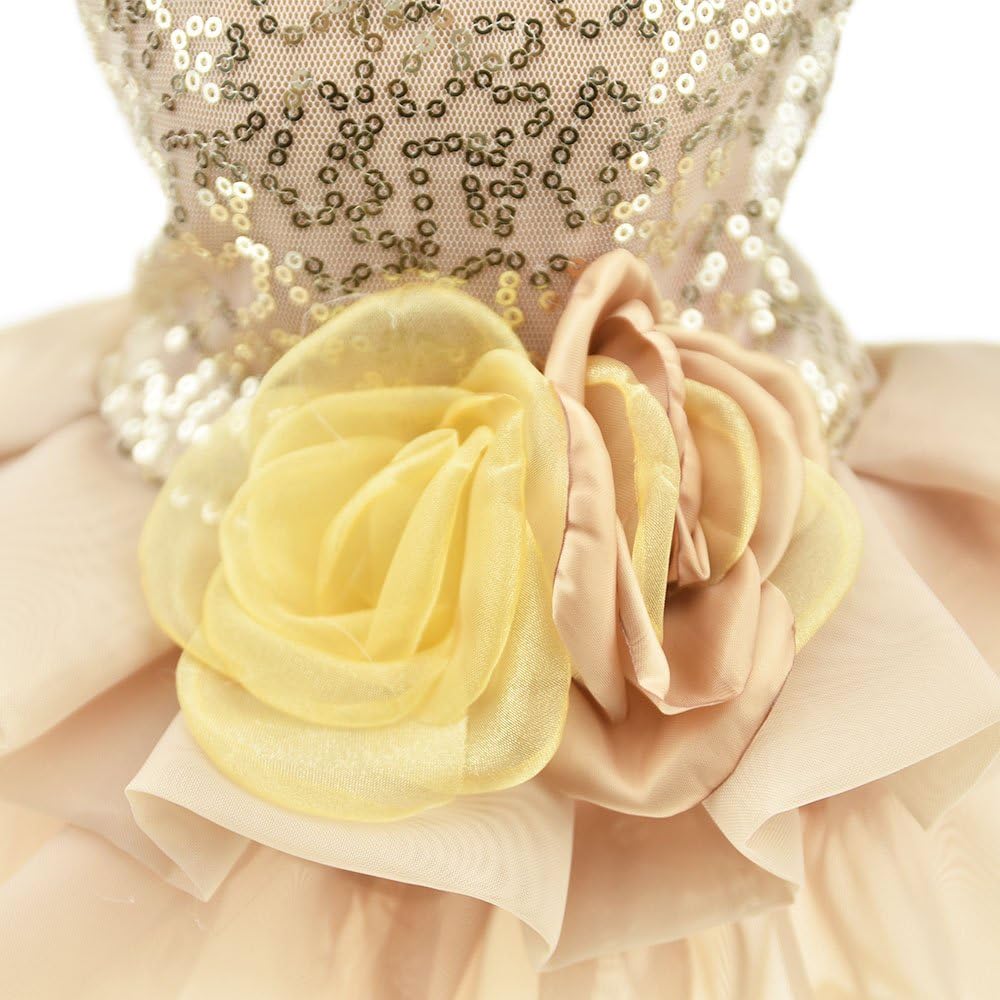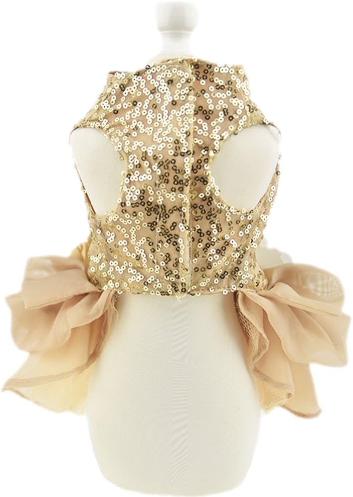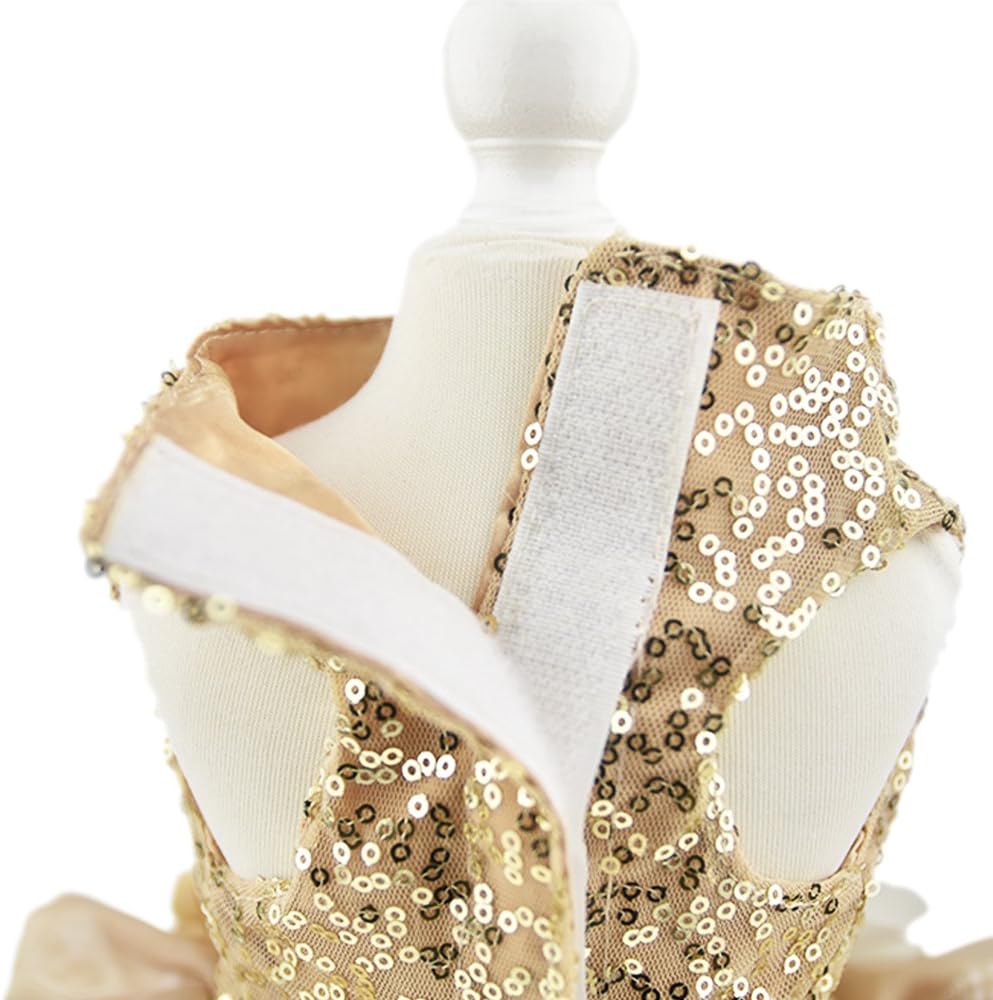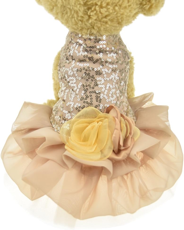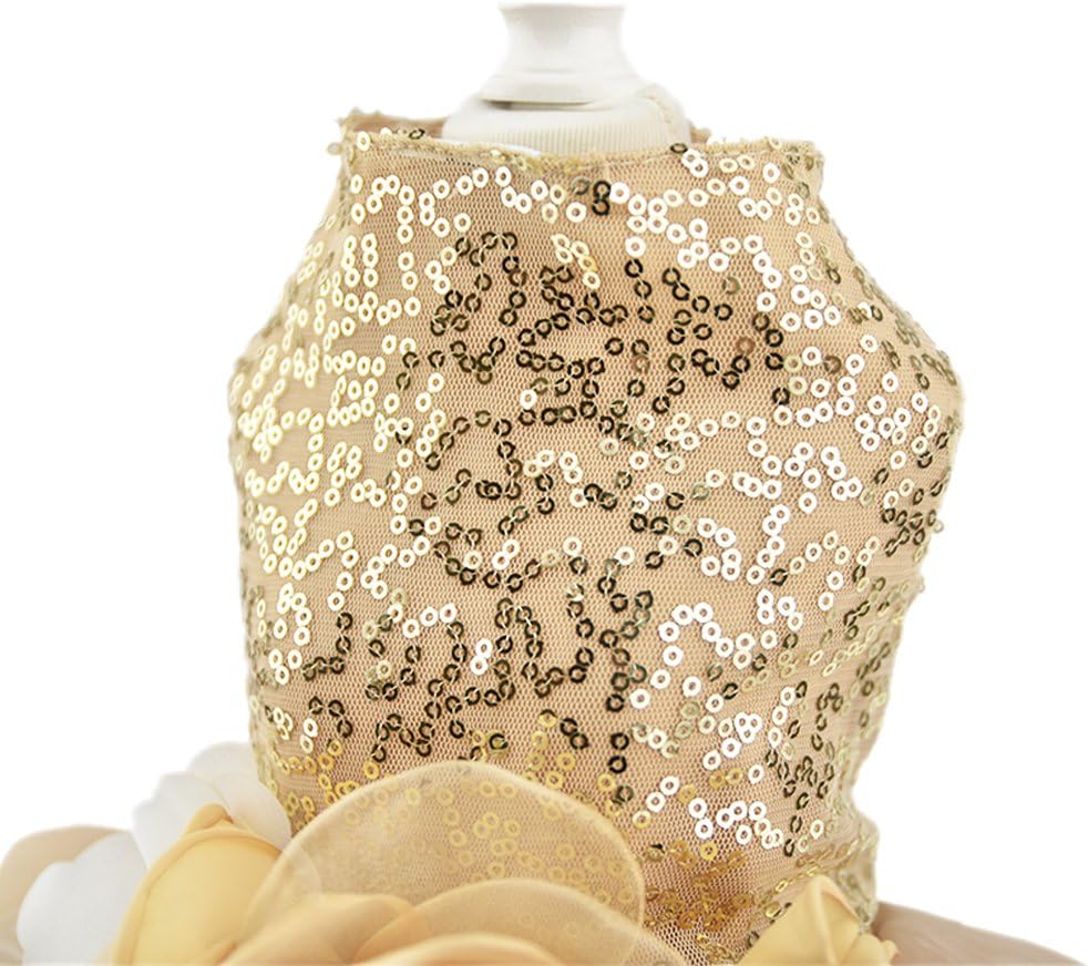 Gold costume wedding dress makes your pet shining and charming in crowd, this fashionable ball gown style dress decorated with flowers on the neckline makes your pet a lovely princess