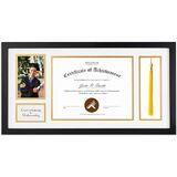 Golden State Art, 11x22 Black Diploma Frame with Tassel Holder for 8.5x11 Diploma and 4x6 Photo with Solid Wood and Tempered Glass, Black Over Gold Mat for Wall, Graduation Keepsakes, 1 Pack