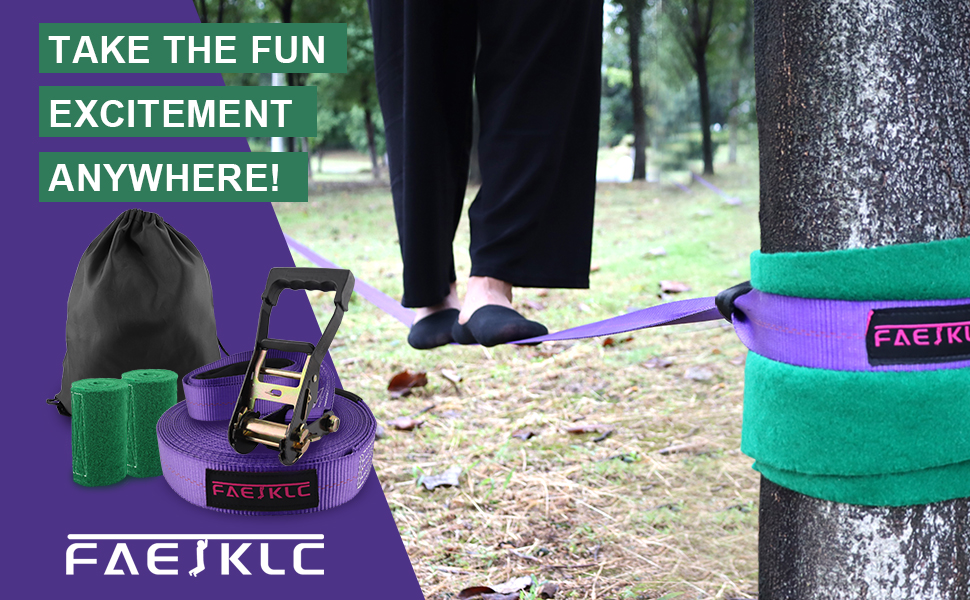 【Slack Line Include】The kit includes 65ft slackline+ratchet line,2 tree protectors and 1 carrying bag. If you want other accessories like climbing rope, disc swing seat,you should purchase separately.