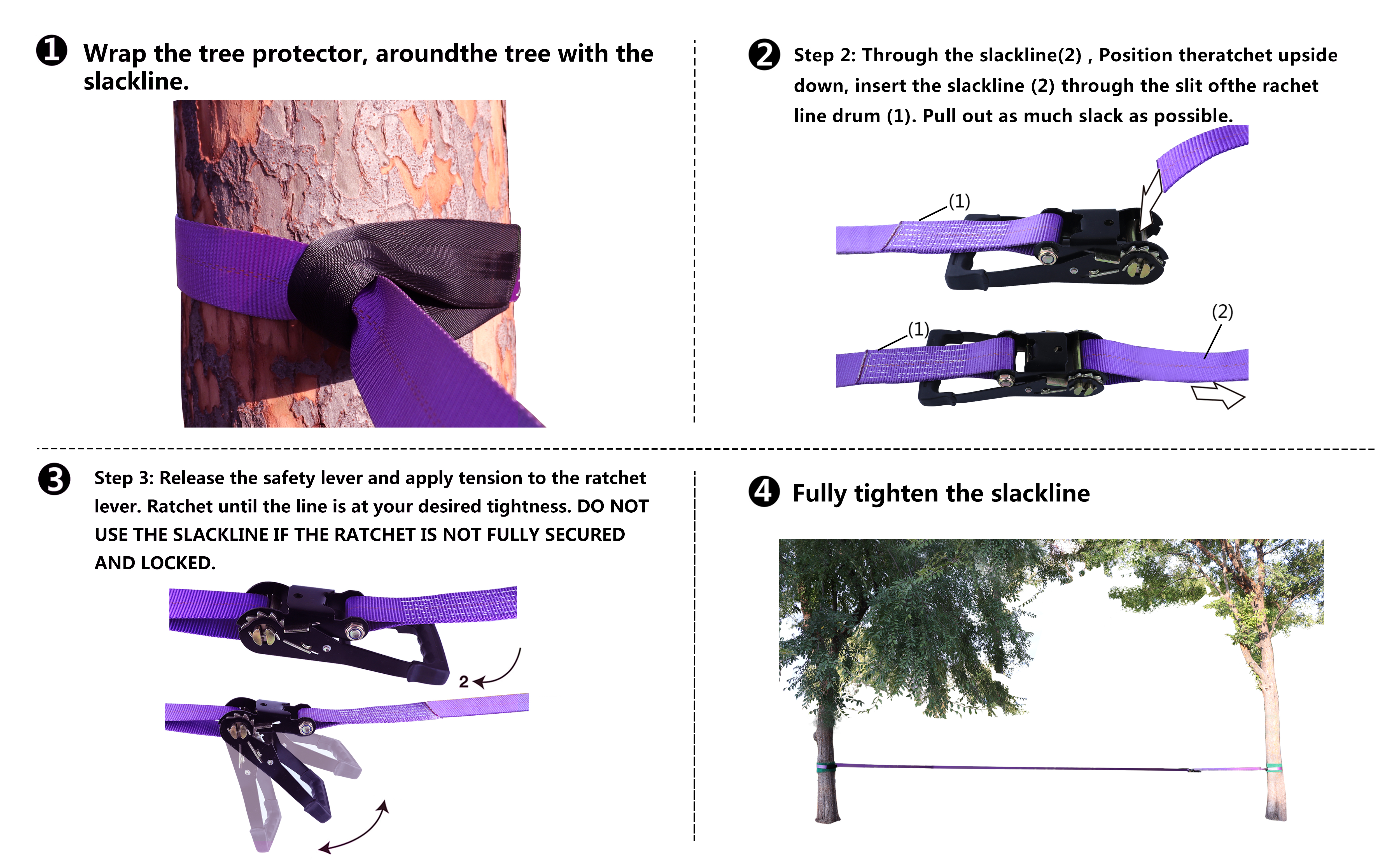【High Quality】Ratchet line are made of high quality polyester fiber and woven using a high-density multi stitch method. Make our slackline more elastic, have a longer lifespan, and thicker than other ropes