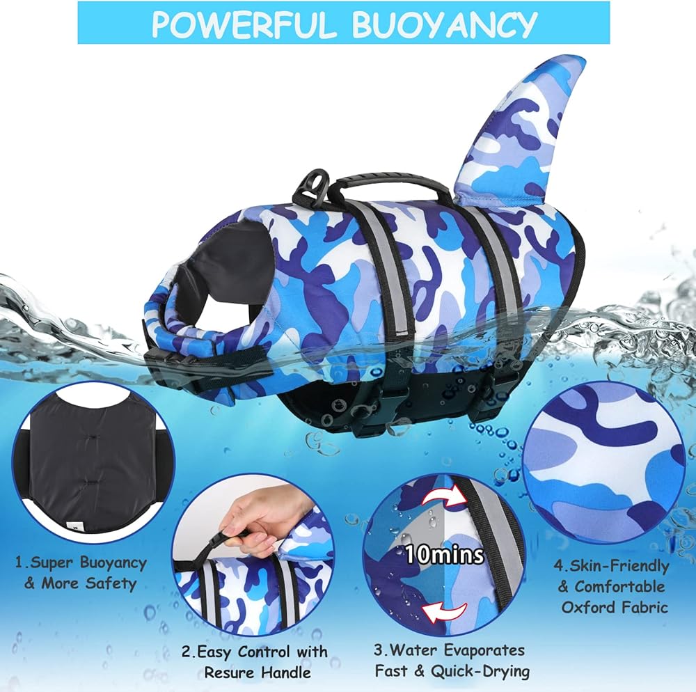 【 Have a Good Time 】Get ready to make a splash with your furry best friend, thanks to our small dog life jacket! This high-quality dog shark life jacket is the perfect way to keep your puppy safe and comfortable while enjoying water activities.