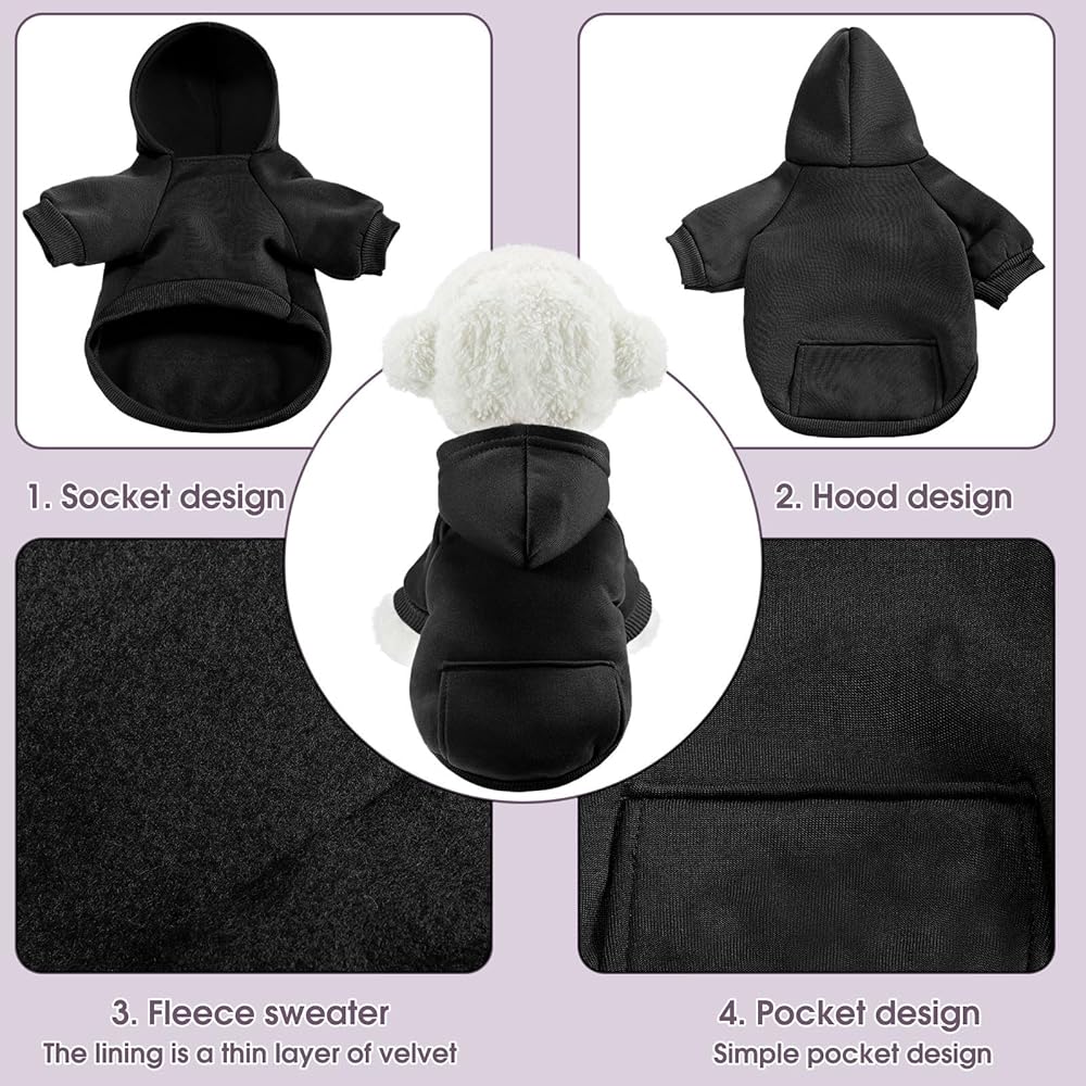 Hoodie style combines with a pocket design lets this simple dog clothes different, wearing it, your dogs will be more cute; Suitable armholes design lets your dog walk with ease.