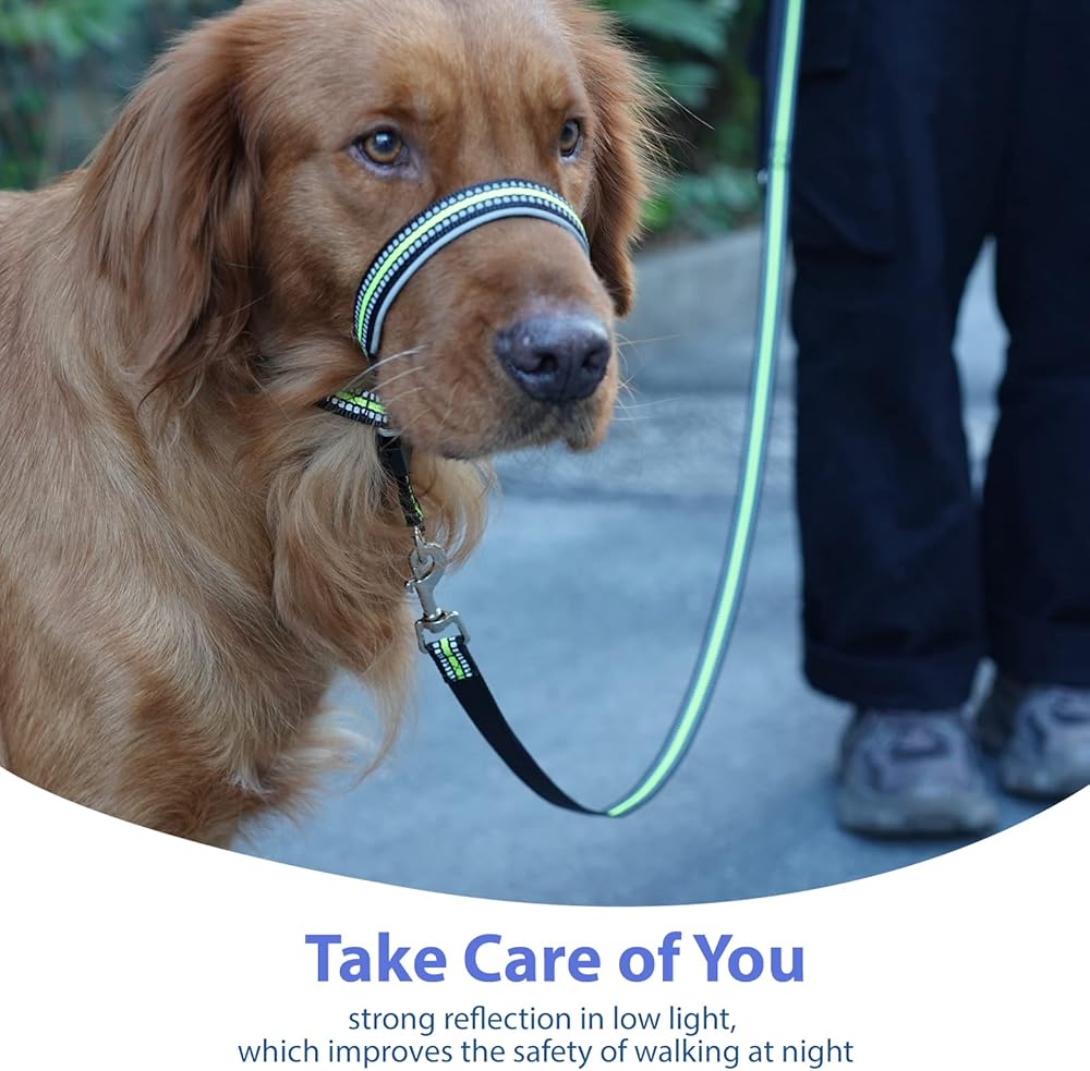Walks Your Dog Safely - Be seen at night! This short lead features 1-Inch wide nylon webbing with reflective threads stitched right in. The entire dog snout harness is finished with 2 lines of highly reflective gray threads for extra visibility in low light. You and your pup will be easier to see when walking at dawn and dusk, or in dimly lit areas.