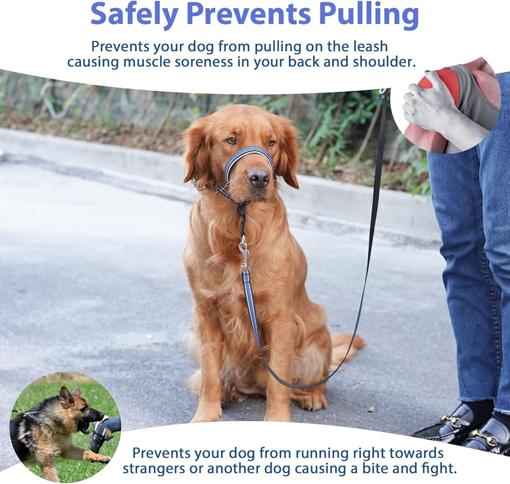 Gentle on Your Dogs - Our head halter for large dogs is gentle on your dog's skin. The strap that goes over the muzzle is padded for extra comfort. Head halter for dogs medium will relieve pressure on the nose when your dog tends to pull suddenly. The dog halter has no choke to let your dog drink, pant, eat and play freely.