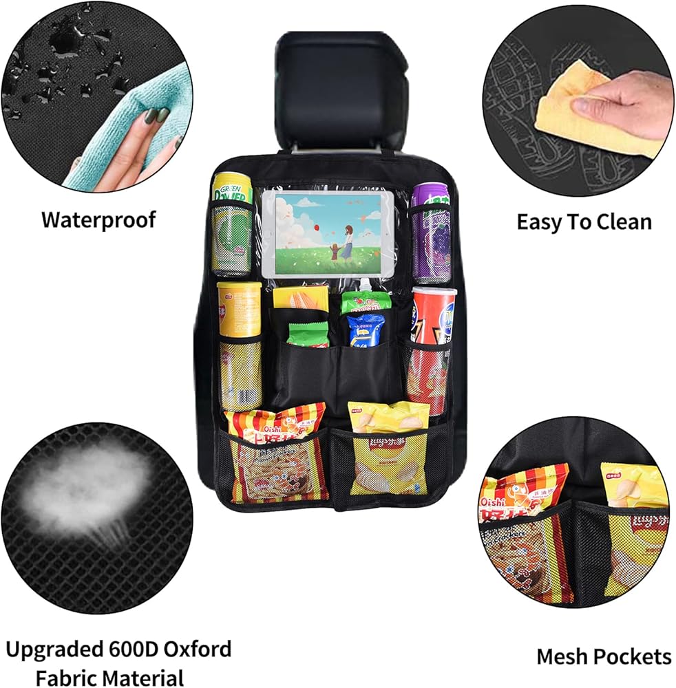 Exptolii Car Back seat Organizer Kick Mats with 10" Tablet Holder and 10 Storage Pockets