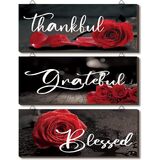 Elegant Red Rose Pattern: the surfaces of these thankful wall decorations are printed with many beautiful patterns of red rose, along with the warm words, adding an intense farmhouse style in your home