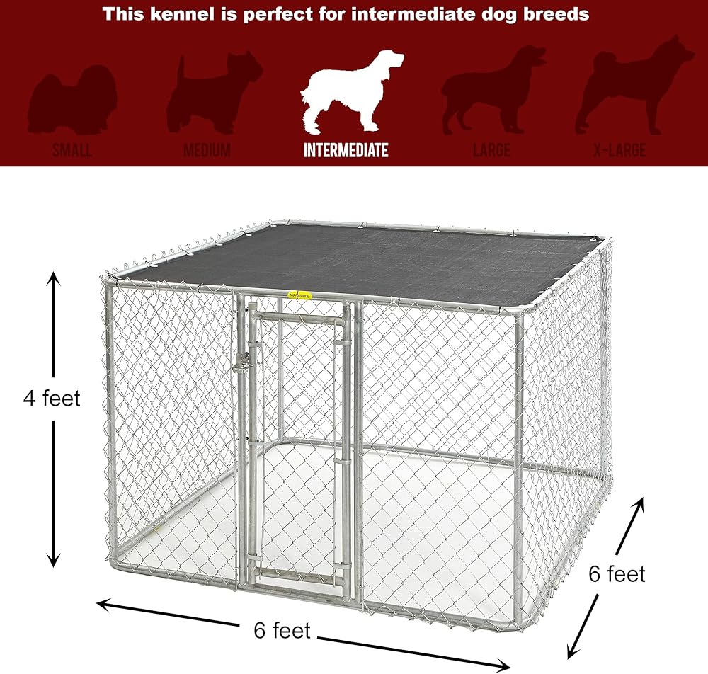 K9664 Size: (48" H x 72" W x 72" L) Features: -Sunscreen included. -Quick and easy set up; 30 minutes - pliers needed. -Strong, secure rounded corner steel frame design. -Portable; lighter in weight than conventional kennels. -One-hand latch operation. Color: -Gray. Dimensions: Size (48" H x 48" W x 72" L) - Overall Height - Top to Bottom: -48". Size (48" H x 48" W x 72" L) - Overall Width - Side to Side: -48". Size (48" H x 48" W x 72" L) - Overall Depth - Front to Back: -72". Size (48" H x 48" W x 72" L) - Overall Product Weight: -76 lbs. Size (48" H x 72" W x 72" L) - Overall Height - Top to Bottom: -48". Size (48" H x 72" W x 72" L) - Overall Width - Side to Side: -72". Size (48" H x 72" W x 72" L) - Overall Depth - Front to Back: -72". Size (48" H x 72" W x 72" L) - Overall Product Weight: -85 lbs. Size (72" H x 72" W x 120" L) - Overall Height - Top to Bottom: -72". Size (72" H x 72" W x 120" L) - Overall Width - Side to Side: -72". Size (72" H x 72" W x 120" L) - Overall Depth - Front to Back: -120". Size (72" H x 72" W x 120" L) - Overall Product Weight: -148 lbs.