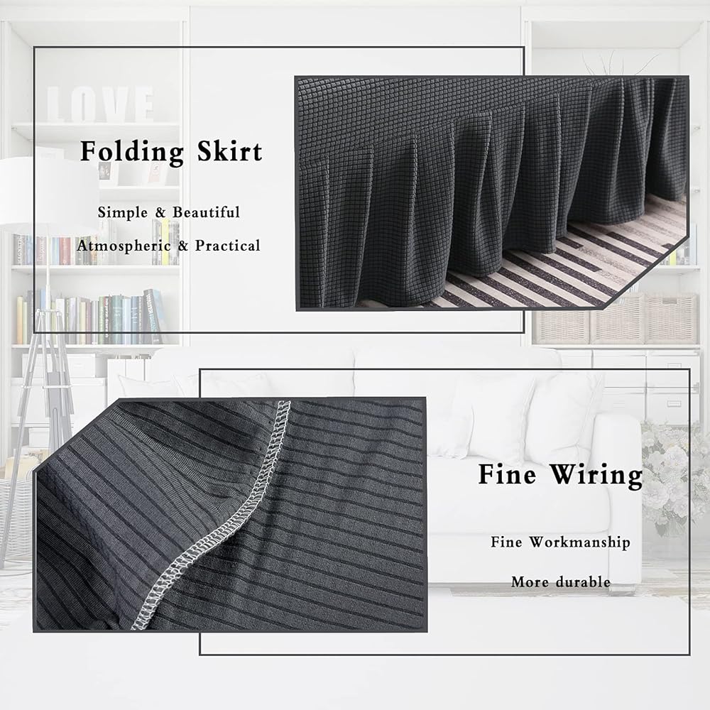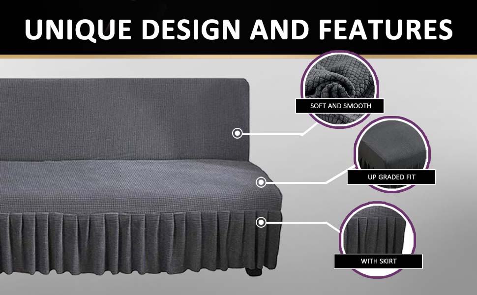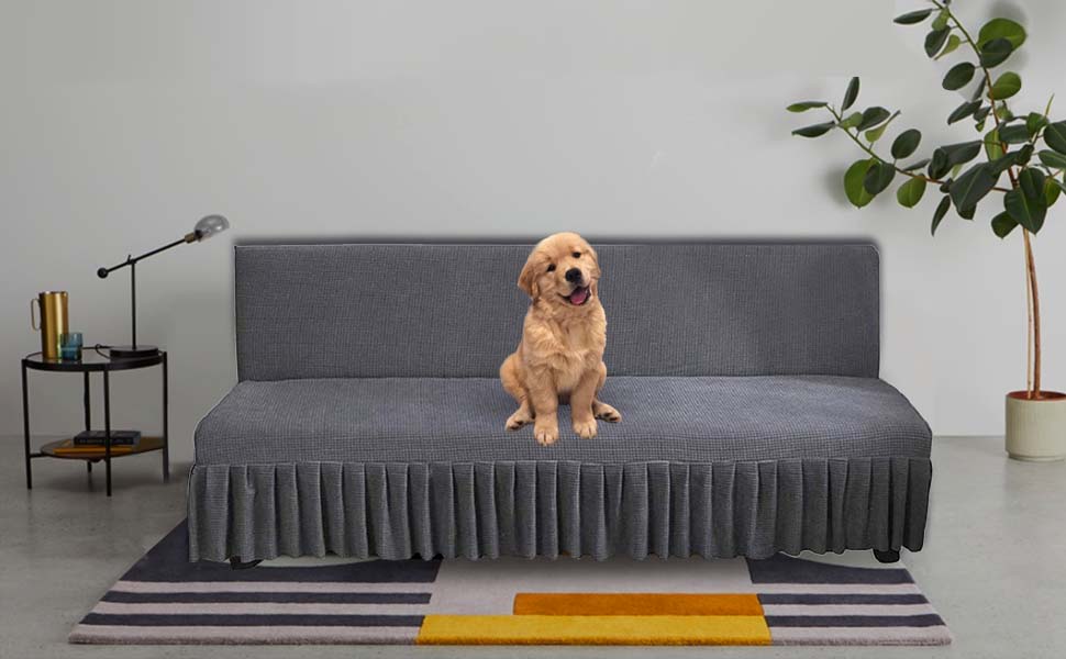 STAY IN PLACE and FASHION STYLE: The ruffled skirt at the front gives a charming appearance without exposing any space and also preventing dust from accumulating underneath. This armless sofa cover is conveniently slipped resistant and strapless, hassle-free for slip again without shifting or moving; Strong elastic band will cover the furniture bottom tightly.