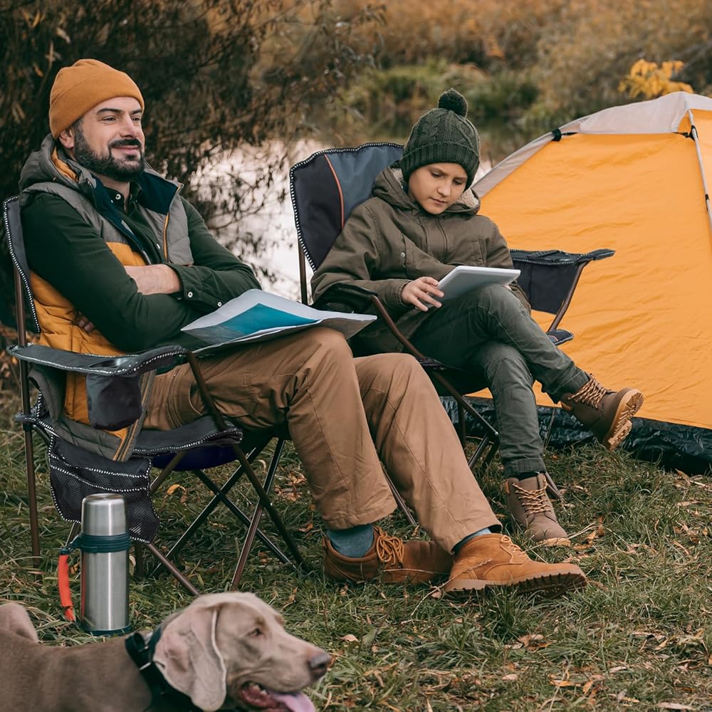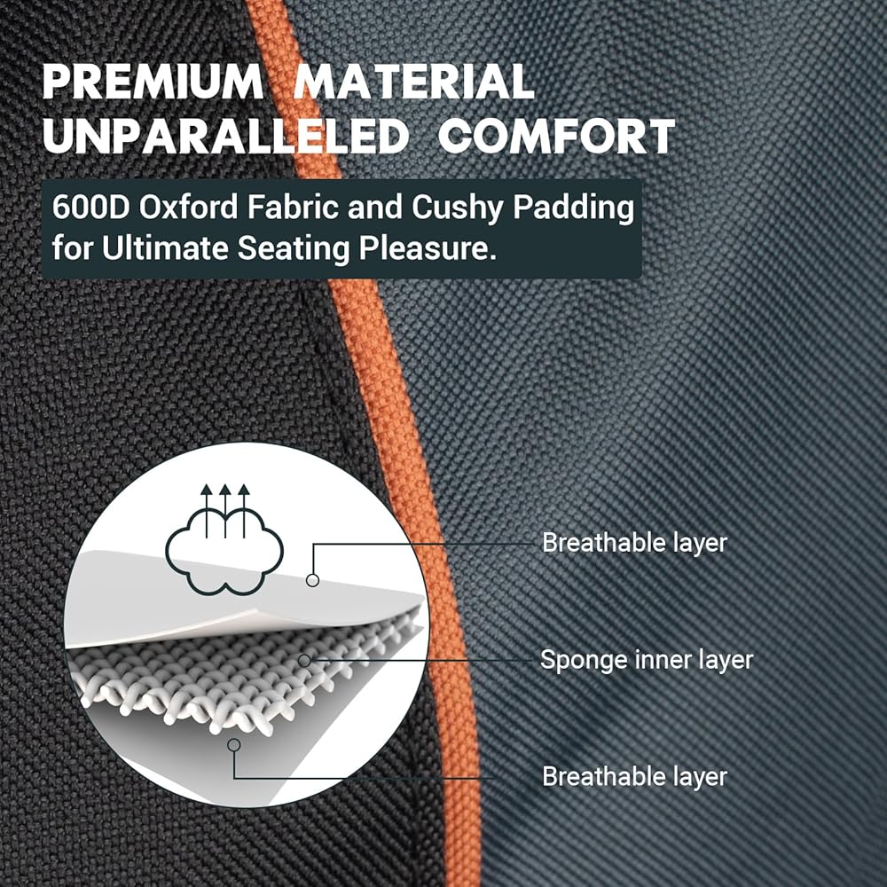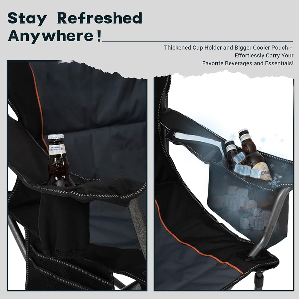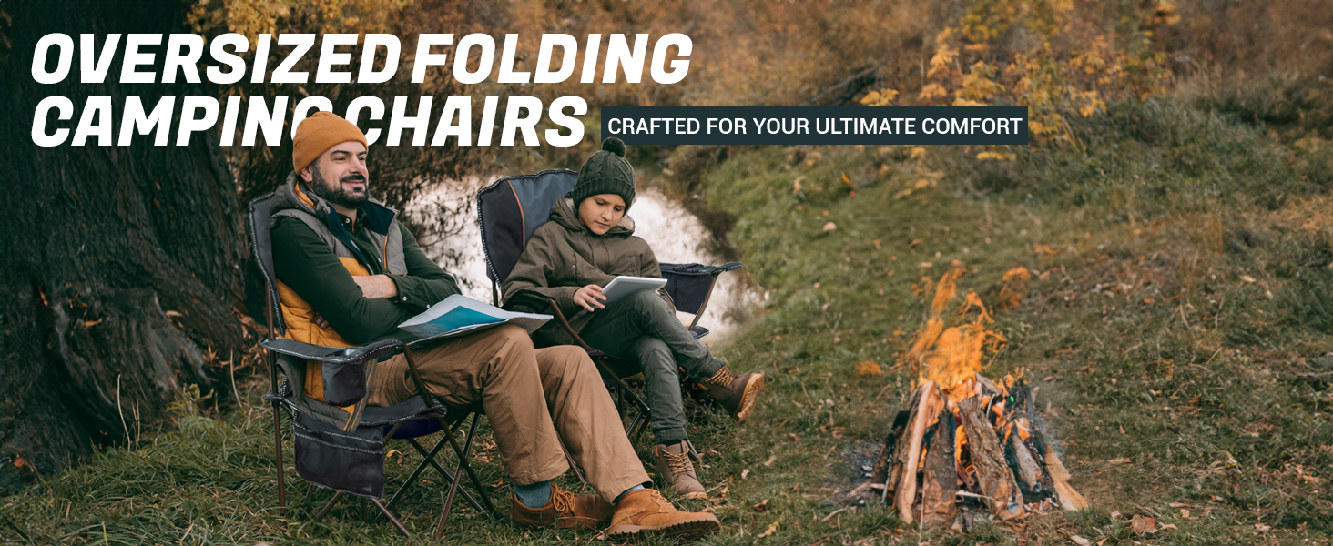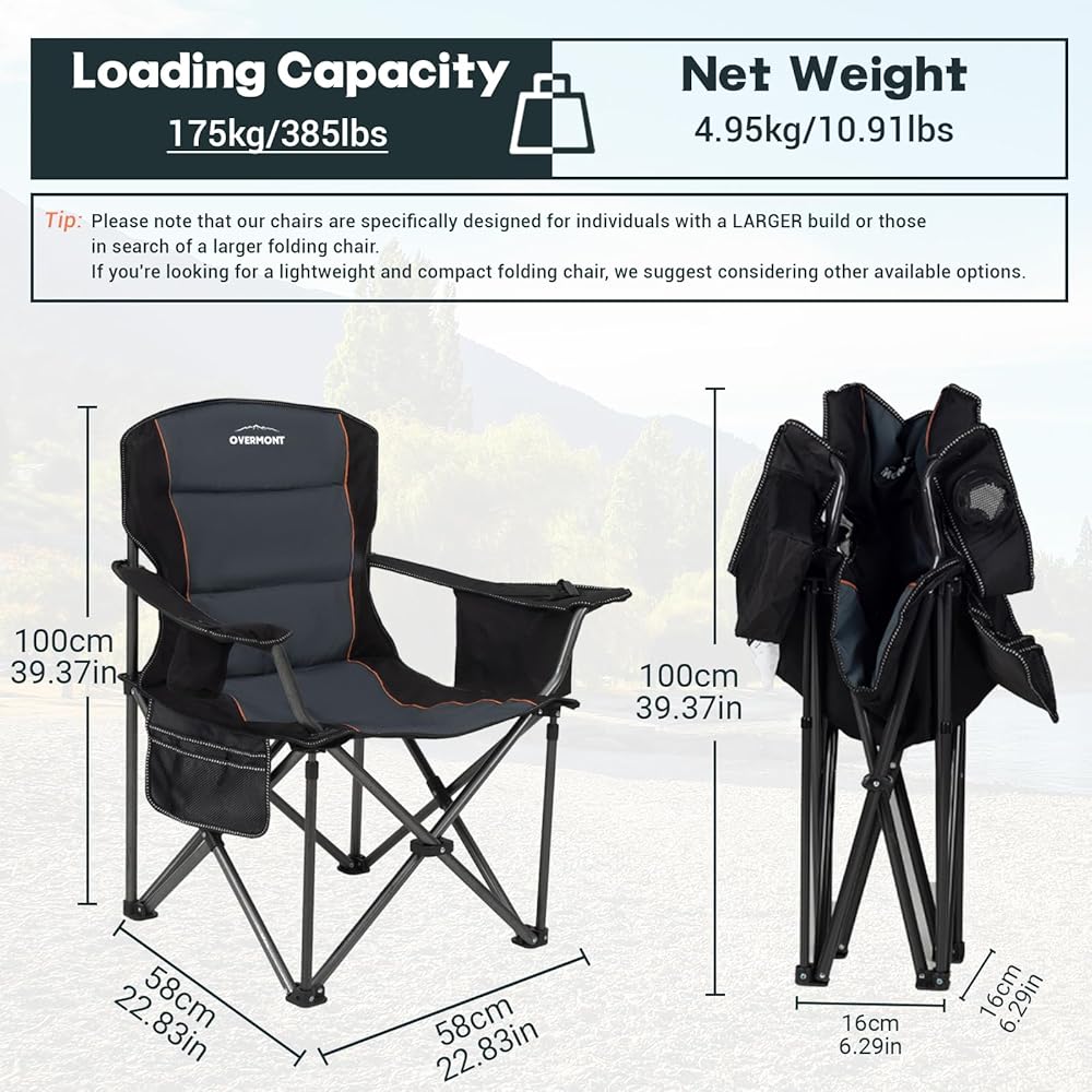 【Durable Oxford Fabric】Overmont oversized folding chair measures 39x22x22in and is made of double-layer tear-resistant 600D Oxford fabric with sponge cushion, providing excellent durability and breathability.