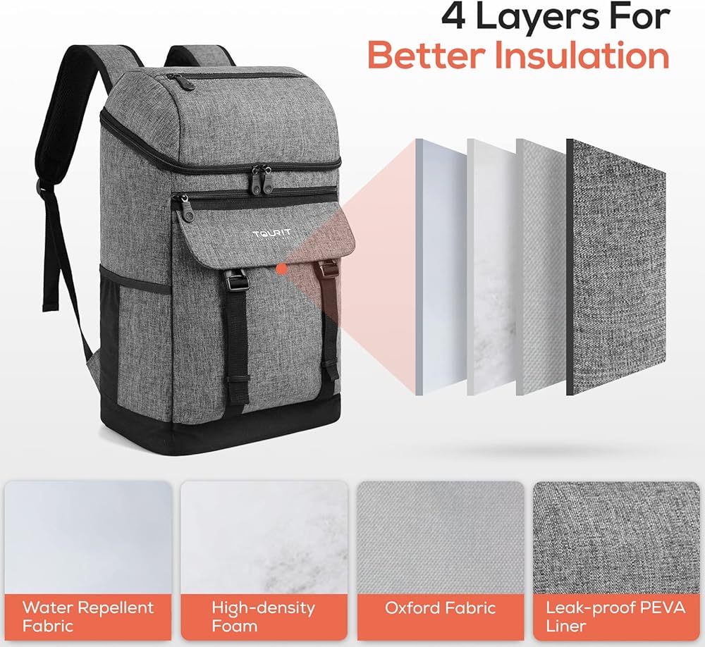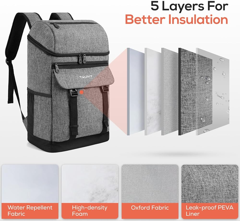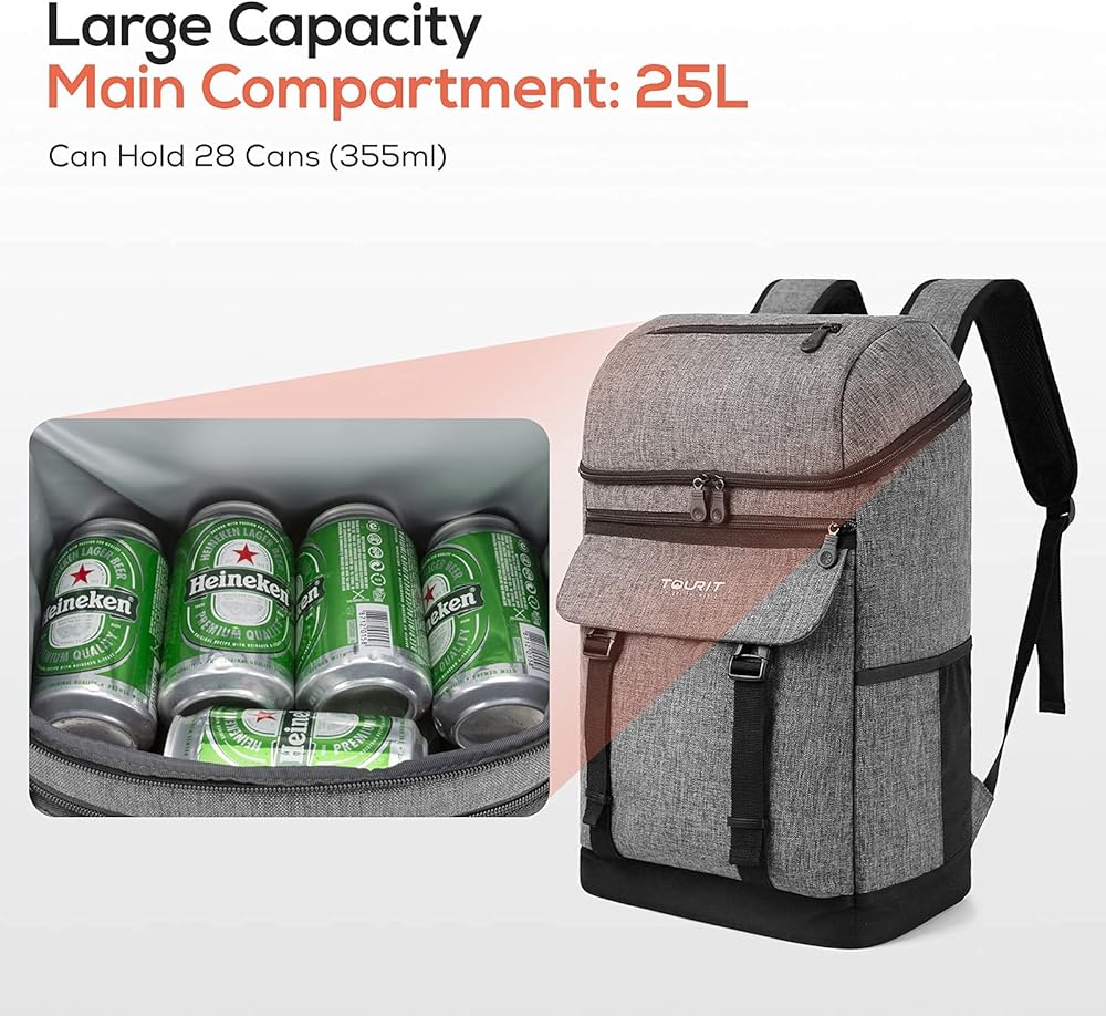 TOURIT 28 Cans Insulated Cooler Backpack for Beach, Camping, Work, Trips, Outdoors, etc.