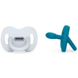 Baby pacifier has revolutionary SX Pro Physiological nipple, designed to help the tongue remain in the same natural position as when baby is breastfeeding, aiding in correct positioning of the mouth, tongue & jaw.