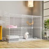 【2-tier】2-tier cat cage playpen provides cats or kittens with a fun, safe place to hangout or play. 1 large platform and 1 ramp offer vertical space for playing
