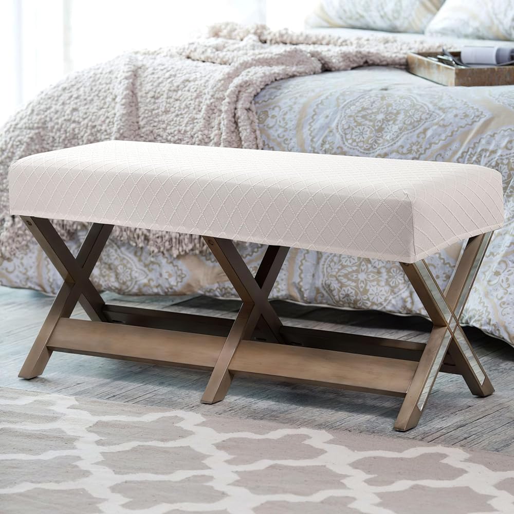 ✅【Fashion Design 】Fashion classic rhombic lattice jacquard fabric design upgrades your older upholstered bench to give it a more sophisticated look and protect benches from scratches, spills, and stains.not only keep your new bench from getting dirty and slight scratches, but also giving your old damaged bench a new look.