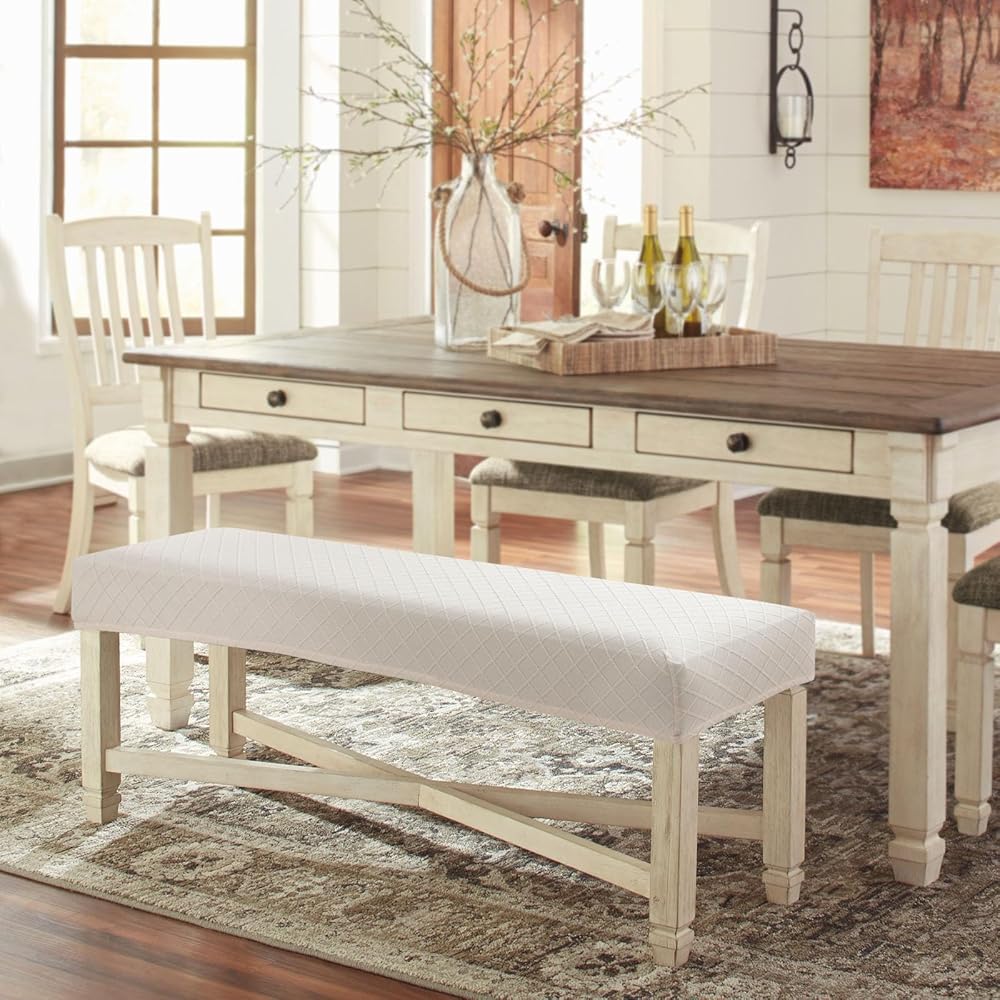 ✅【Suitable for Chair Size】The bench covers available in a variety of colors, Will fit most of regular size upholstered dining bench 42" to 54” long, 14" to 18” wide, 3.14" to 4.7" height. (Please check the Size Chart in product picture before order)