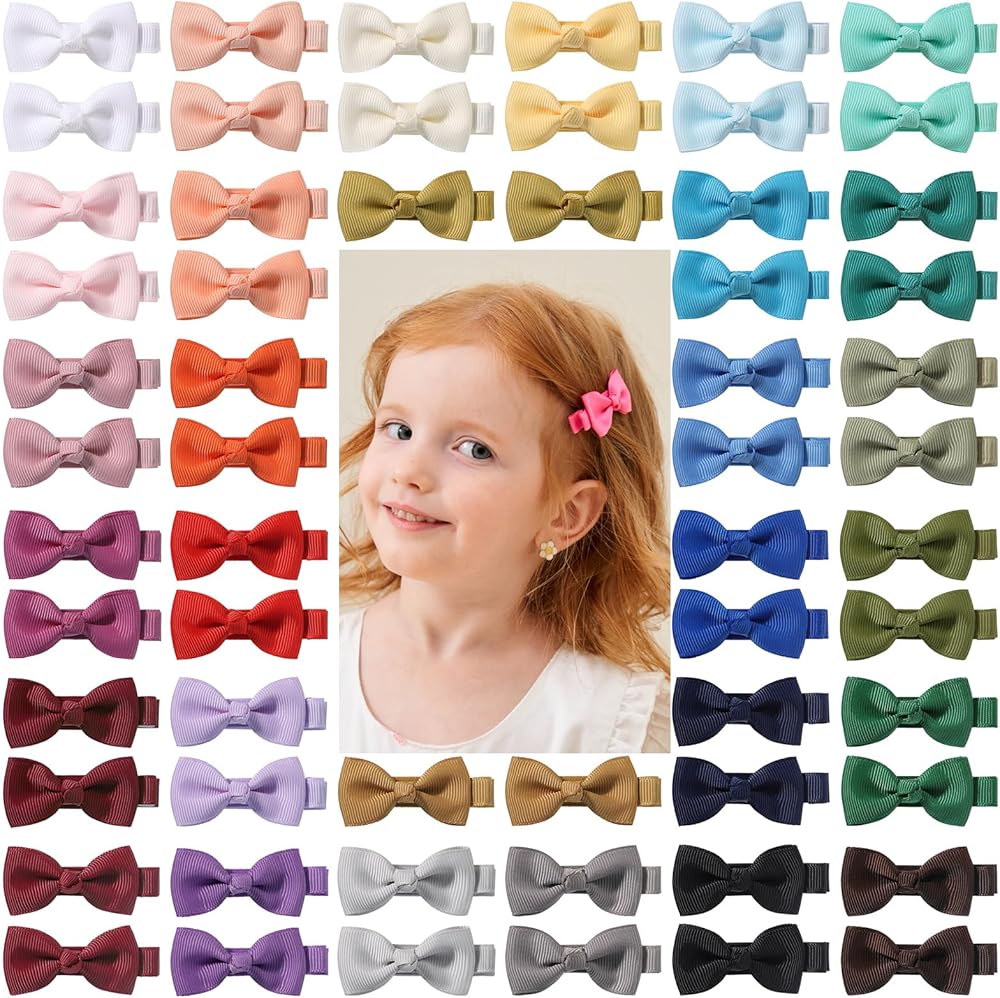 Best Gift🎀 Very cute and small size hair bow clips for girls. A perfect gift choice for any occasions like baby party, baby showers, birthday, family photography, Christmas and so on. These girl bows will easily meet your little one's daily wearing needs and every mom and baby will be happy with them.